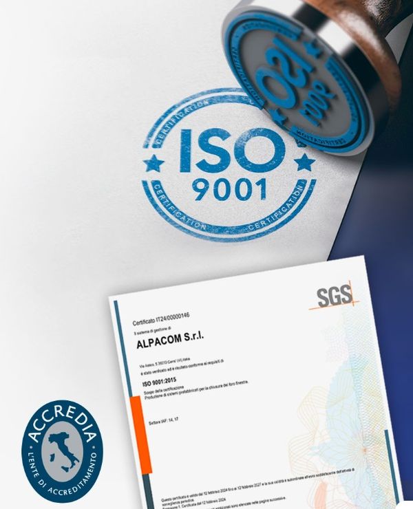 Alpacom, nell’ottica di sviluppo aziendale che ha visto negli ultimi anni un aumento esponenziale della propria quota di mercato, con conseguente necessità di ottimizzare i cicli produttivi e l’apertura di un quinto stabilimento, ha sentito l’esigenza e la volontà di attuare tutte le strategie necessarie per ottenere la certificazione Iso 9001.