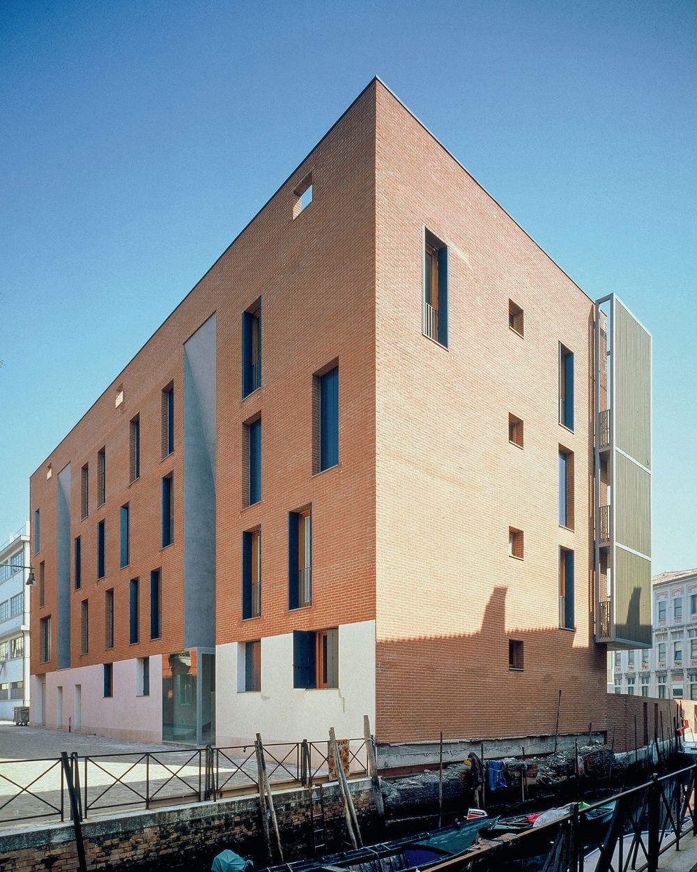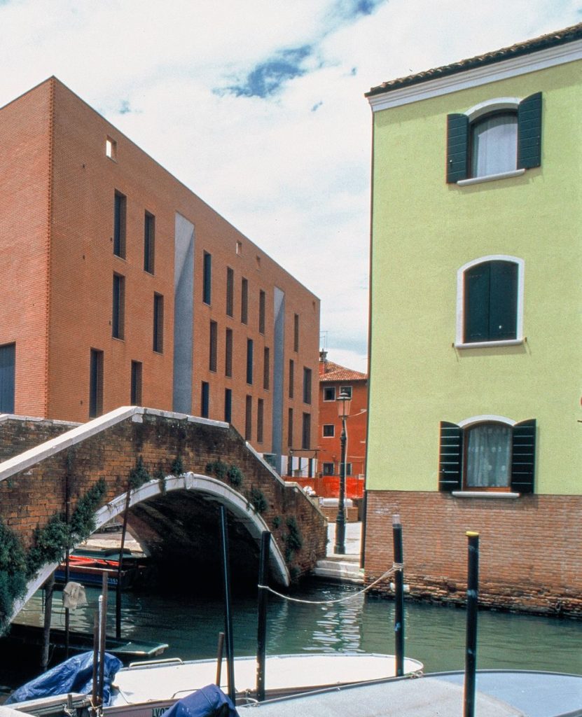 Così, i due volumi che compongono l’edificio G1-G2, qui illustrato, in realtà fanno parte del gruppo dei cinque singoli interventi contigui, o forse sarebbe meglio dire «di un unico grande progetto» realizzato sull’area dismessa dell’isola della Giudecca.