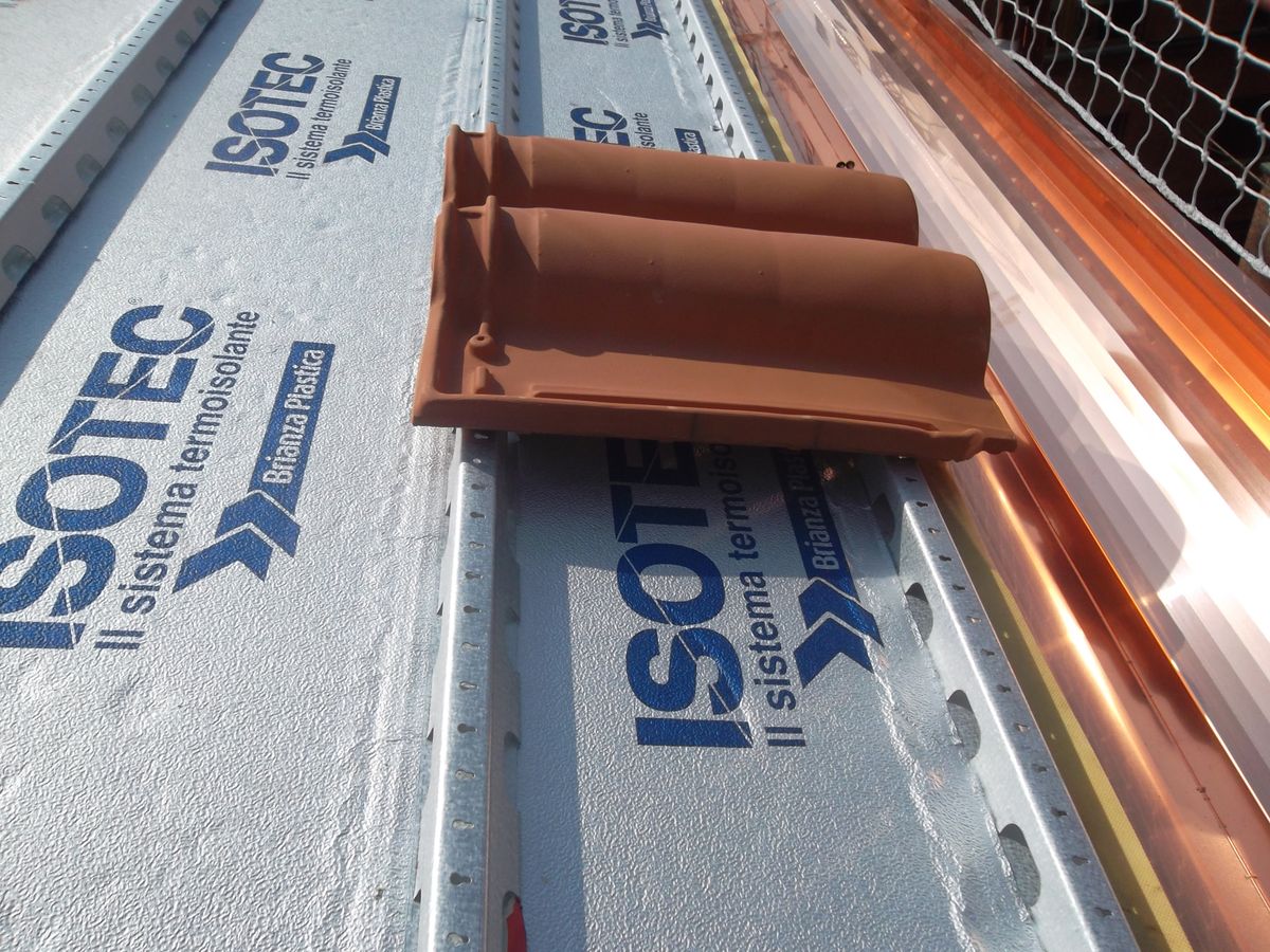 Il pannello in dettaglio. L’anima del pannello Isotec in schiuma poliuretanica espansa rigida autoestinguente, con densità 38 kg/mc, offre alla copertura e dunque all’edificio, elevate prestazioni di coibentazione, con conseguente comfort abitativo per ambienti ubicati all’ultimo piano, oltre a far registrare significativo risparmio energetico, grazie alla riduzione delle dispersioni termiche. I pannelli sono battentati a coda di rondine sui lati corti per la massima continuità dell’isolamento che elimina la formazione dei ponti termici, con un correntino asolato in acciaio integrato sul pannello, che consente di attivare la ventilazione della copertura.