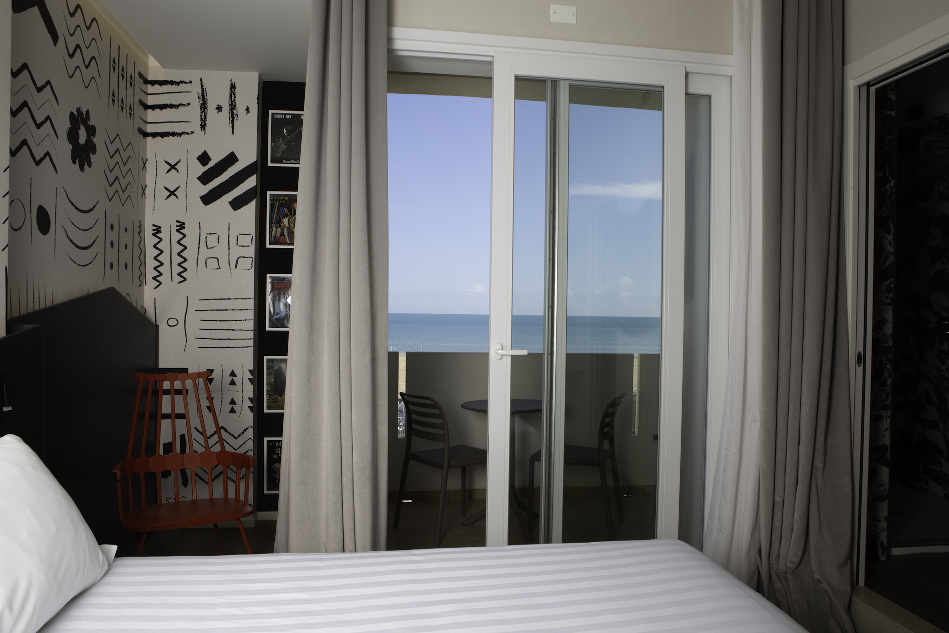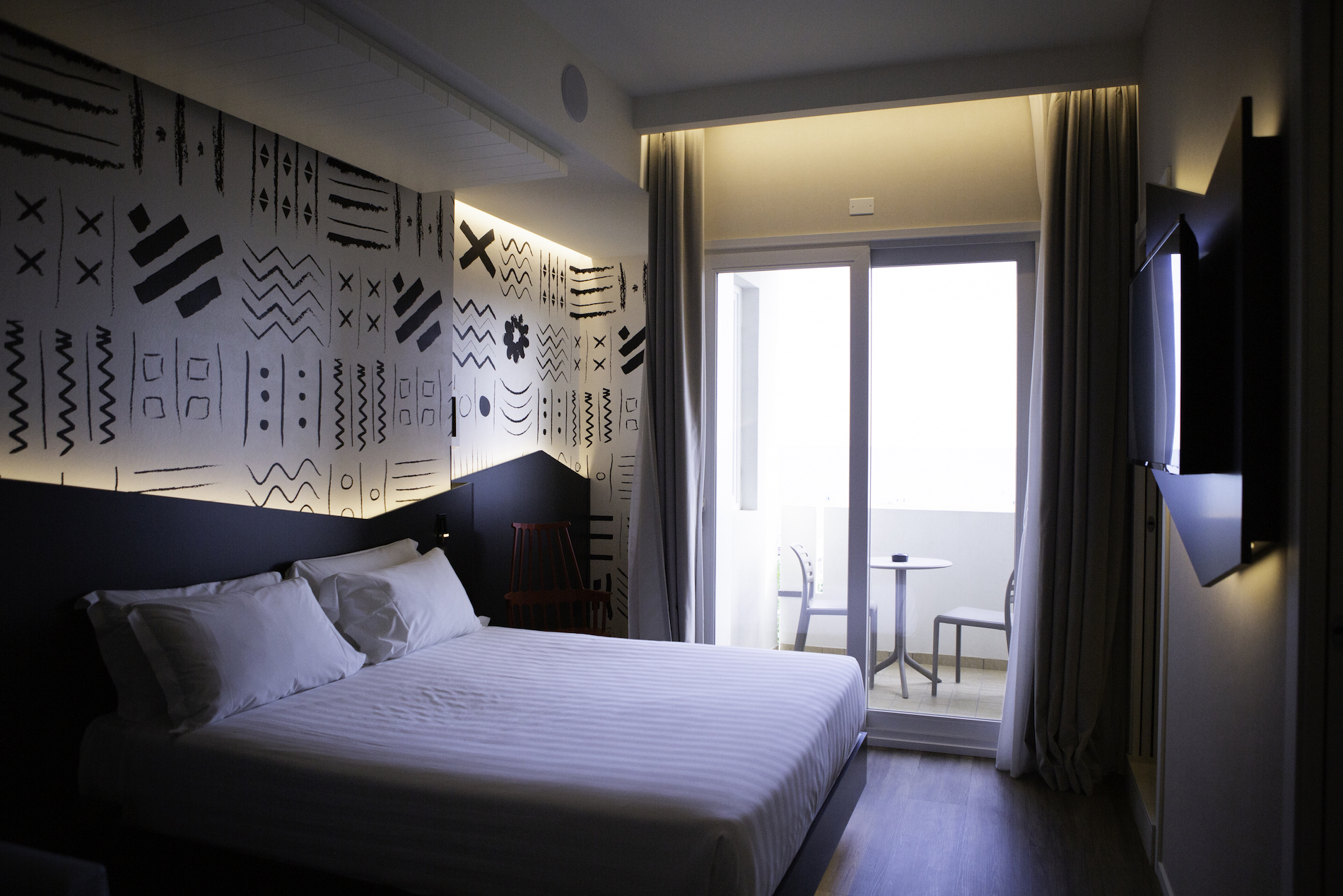 Alla base c’è stato uno studio accurato su come poterci differenziare dalle tante attività similari presenti sul nostro territorio. Ci siamo dati una caratterizzazione con l’obiettivo di riuscire a presentare un prodotto con caratteristiche diverse e siamo riusciti a progettare 101 camere da 120 che ne avevamo precedentemente, tutte dotate di grande comfort e soprattutto tematizzandone la maggior parte su diversi temi. L’obiettivo era per ogni camera realizzare un mood, un concetto di camera dedicata alle proprie passioni. All’ultimo piano c’è una vera grande suite unica penso a Rimini, lo Studio360, la suite che spalanca le porte dell’orizzonte».