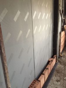 Le pareti delle abitazioni sono state isolate acusticamente con Isolmant Perfetto Special 50 mm, soluzione per l’isolamento delle partizioni verticali, sia perimetrali sia divisorie tra diverse unità immobiliari. Un prodotto a gradiente di densità variabile lungo lo spessore, specifico per l’inserimento in intercapedine che unisce il polietilene Isolmant Special e la brevettata fibra di poliestere IsolFIBTEC PFT. Grazie alla sua speciale conformazione, Perfetto Special garantisce un elevato assorbimento della risonanza di cavità che si genererebbe in una intercapedine vuota, permettendo così alla parete di raggiungere il potere fonoisolante richiesto dalla normativa, in questo caso specifico un indice di isolamento al rumore aereo pari a 57 dB.