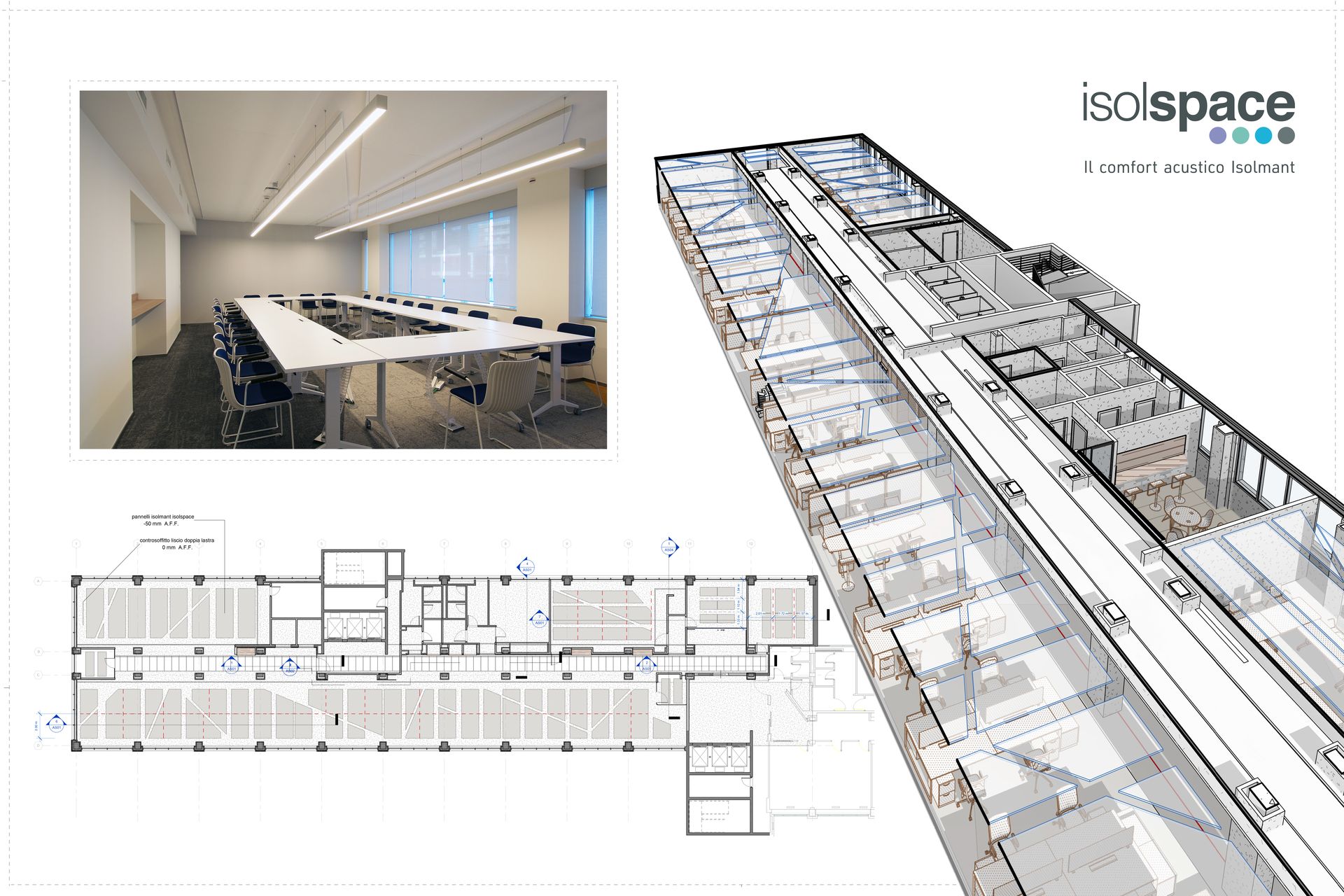 Area installazione pannelli tra open space e sale riunioni isolspace style: 490 mq