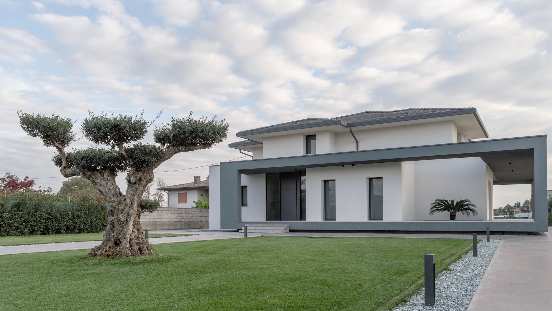 La dimora di una famiglia borghese della seconda metà del Novecento, situata a Rossano Veneto (Vicenza) adiacente a un’area produttiva di proprietà, è stata oggetto di un progetto di conservazione di alcuni caratteri tipologici e formali del fabbricato, di rinnovamento per la riorganizzazione degli spazi della residenza e di creazione di nuove pertinenze.