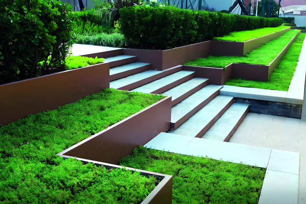 L’inserimento armonico del Talent Park nell’ambiente urbano avviene per mezzo di gradinate e rampe di accesso contornate da morbidi terrazzamenti, che fungono da punto di fusione con le nette geometrie del circondario.