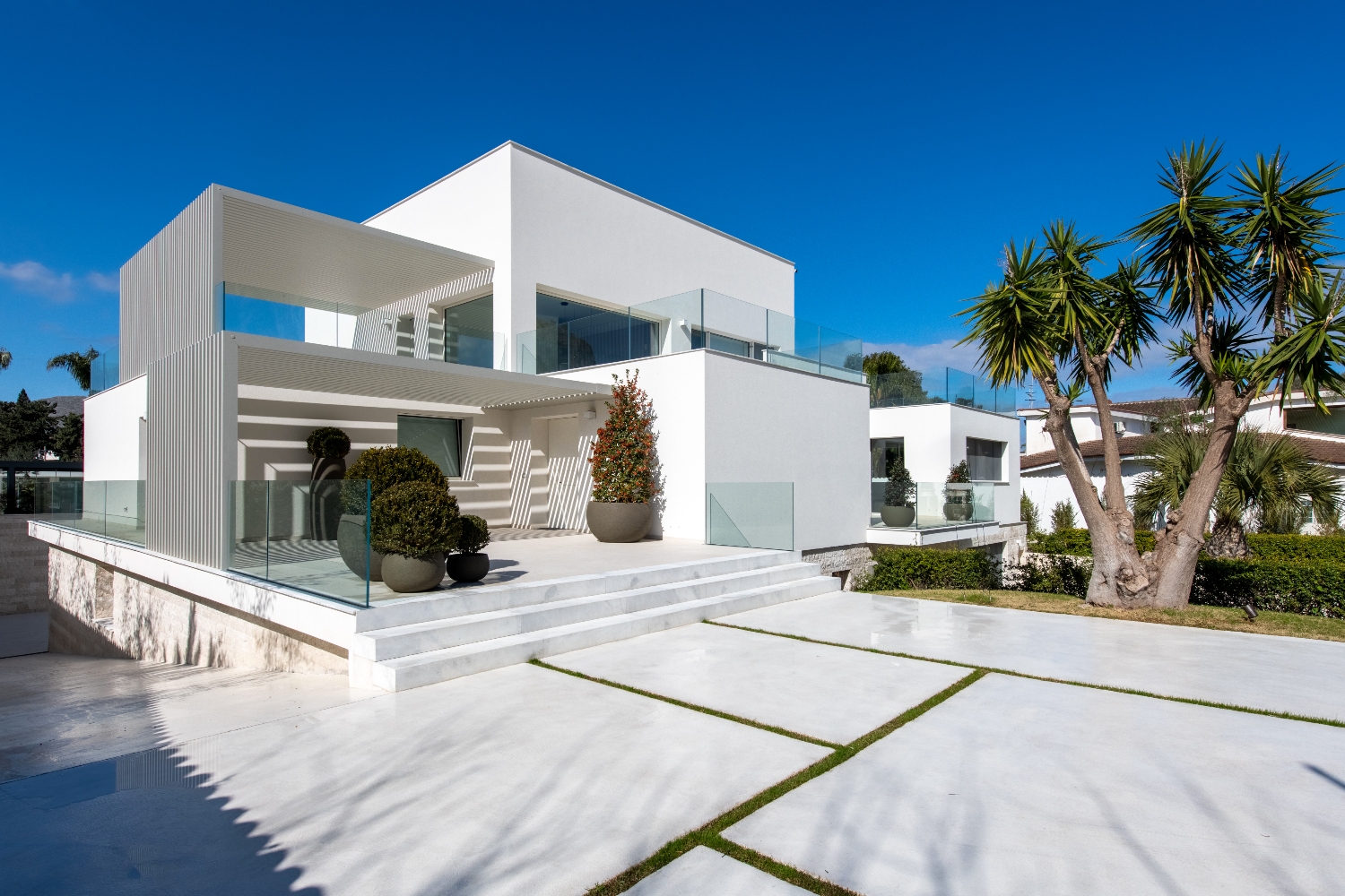 L’armonia tra volumi ben definiti, prospetti puliti e linee semplici viene esaltata dalle grandi vetrate, che invitano la luce naturale a inondare ogni stanza in modo strategico e creano l’illusione di un confine sfumato tra interni ed esterni.