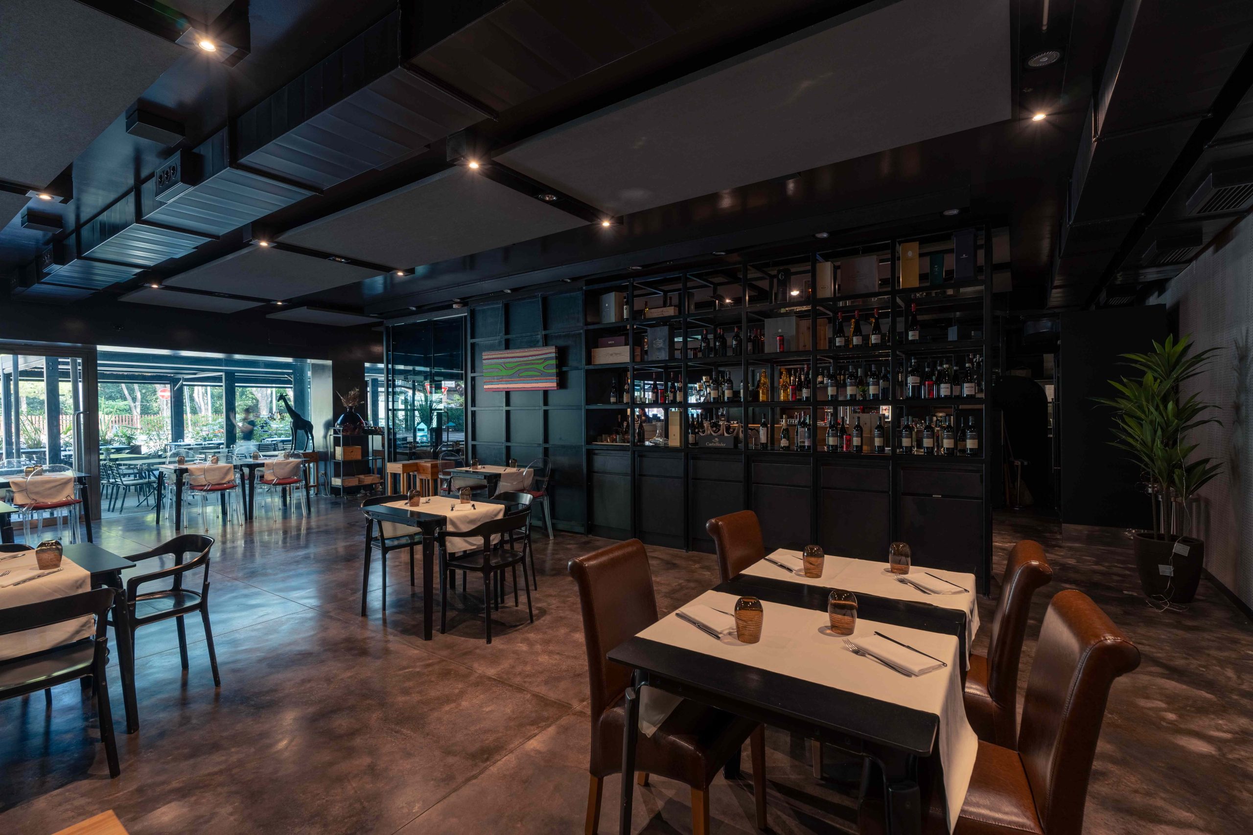 Fulcro di un sistema che dialoga con l’illuminazione calda e soffusa, orchestrando un’atmosfera intima e sofisticata, il rivestimento continuo non è solo un elemento decorativo, ma anche un elemento che unifica le diverse aree funzionali, creando un filo conduttore visivo che lega ogni ambiente del ristorante.