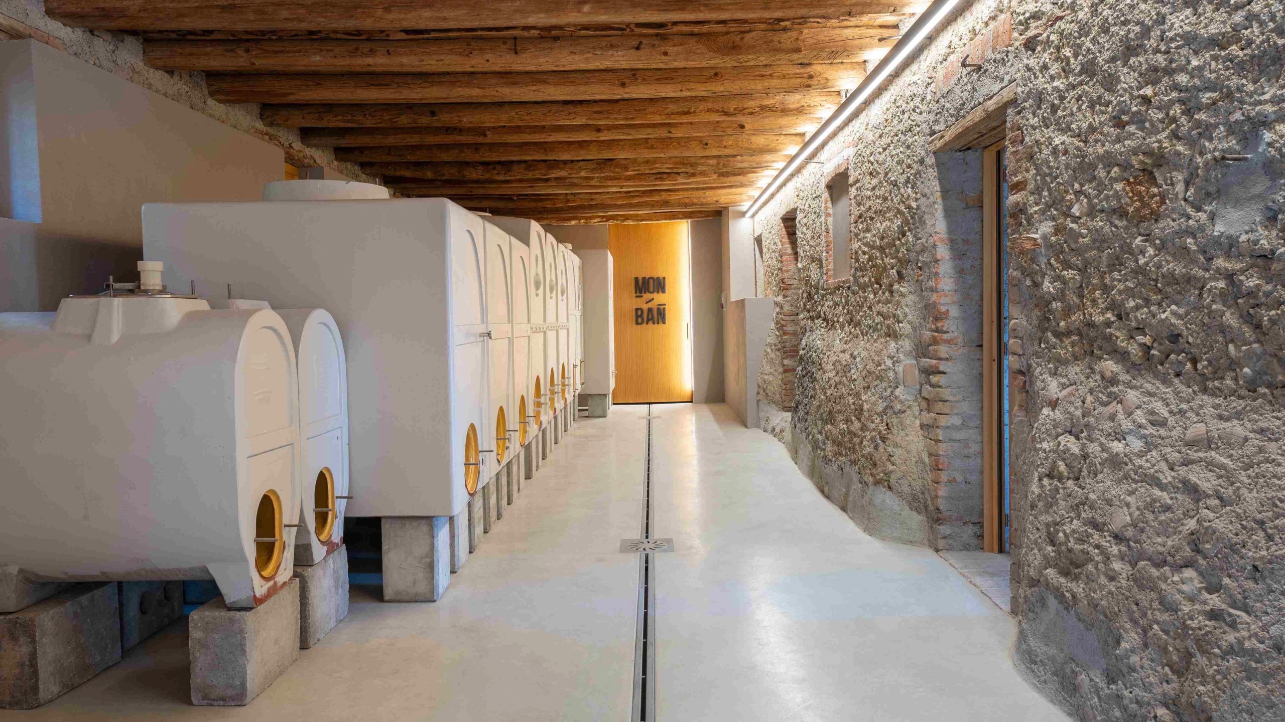 Nelle pittoresche colline di Conegliano (Treviso) sorge Cantina Monban. Questa accoglie i visitatori in un ambiente che fonde fascino sobrio ed essenziale, dove ogni dettaglio narra l’equilibrio tra radici contadine e sensibilità contemporanea. L’edificio, originariamente un nucleo rurale cinquecentesco con torre merlata e poi convertito in cantina, è rinato grazie a Matteo Bisol e Veronica De Martin, trasformandosi in un vivace progetto di vita che intreccia territorio e imprenditorialità.