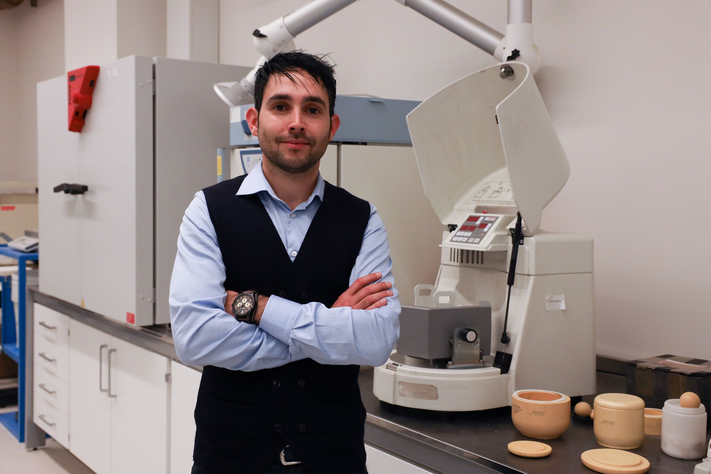 Giangavino Muresu nei laboratori Italcementi (foto Italcementi)