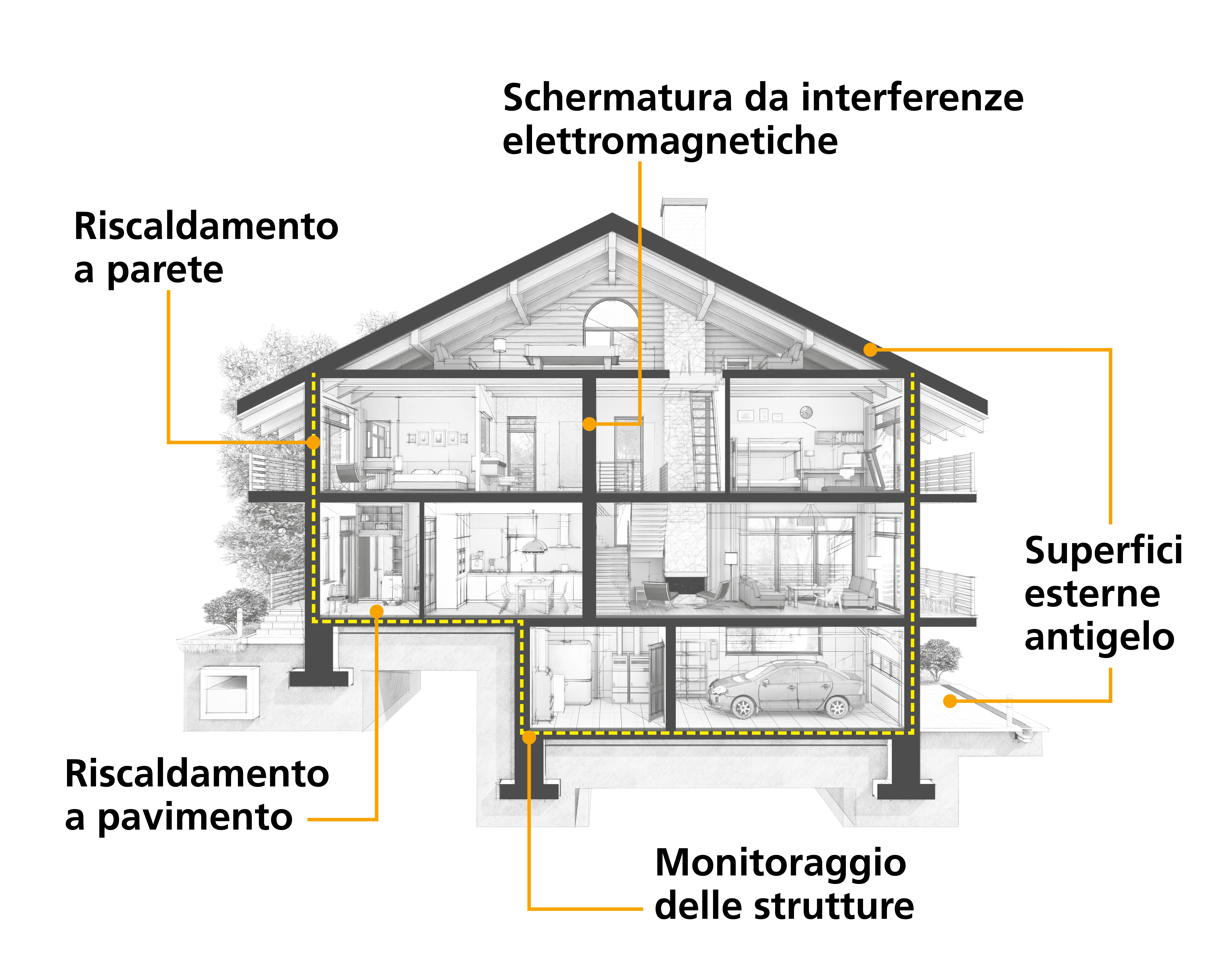 La ricerca sta andando ancora più avanti e Italcementi sta studiando anche altre interessanti applicazioni di questi smart concrete. Il composito cementizio potrà essere utilizzato per riscaldare superfici esterne, offrendo una soluzione anti-neve e antighiaccio sicura ed eco-friendly.