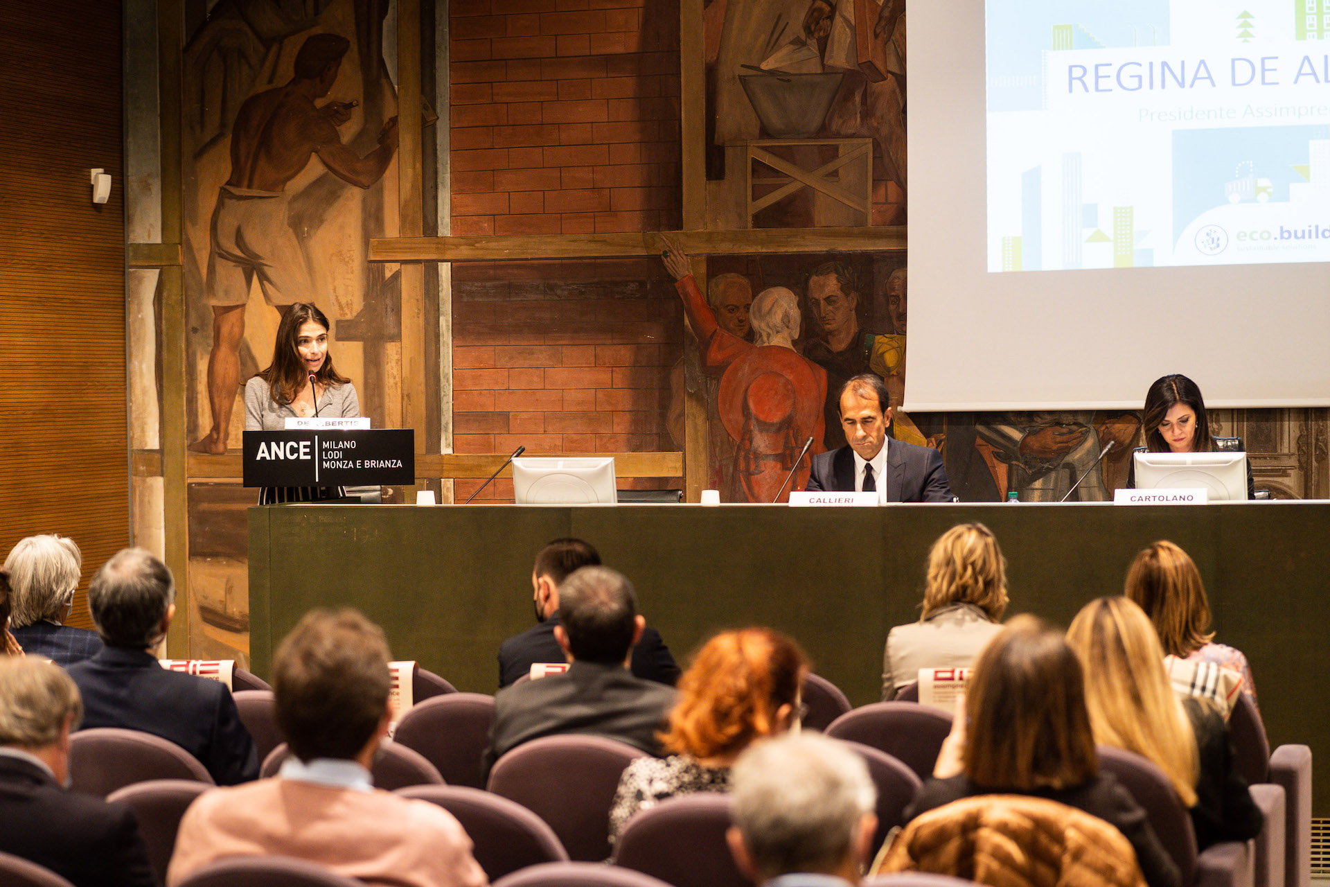 All’evento hanno partecipato, in qualità di relatori, oltre a Regina DeAlbertis, Presidente di Assimpredil Ance e Roberto Callieri, Amministratore Delegato di Italcementi, anche Giovanni Bottinelli, Direttore Tecnologie e Qualità di Italcementi, Stefano Roncan, Direttore Commerciale di Italcementi, Alfonso Di Bona, Amministratore Delegato di Calcestruzzi, Margherita Finamore, Project Manager della scuola “A. Brancati” di Pesaro, certificata Leed Platinum e candidata al Green Solution Award alla COP26 di Glasgow, Francesco Freri, General Manager di 4Bild, franchising di materiali edili e Presidente Consorzio Rec (Recupero Edilizia Circolare) e Carlotta Penati, Coordinatrice progetto “FareRete” e “Economia Circolare”, Ordine degli Ingegneri della provincia di Milano.