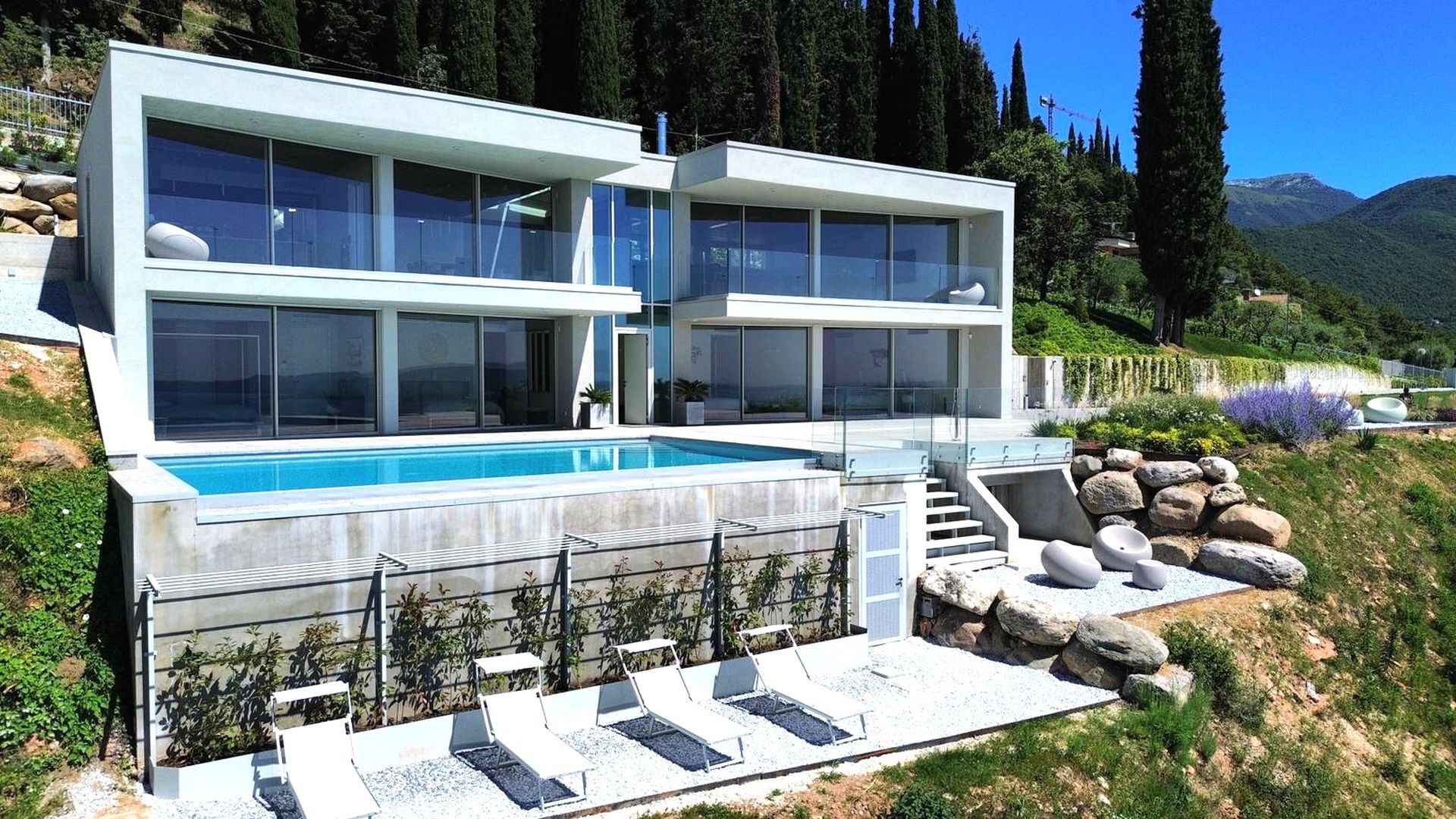 Al piano terra ci sono quattro camere matrimoniali con bagno privato; al piano superiore un soggiorno, zona pranzo, bagno, cucina, padiglione con zona pranzo esterna; ed al piano inferiore un garage con montauto, lavanderia, locale tecnico, bagno e area benesser.