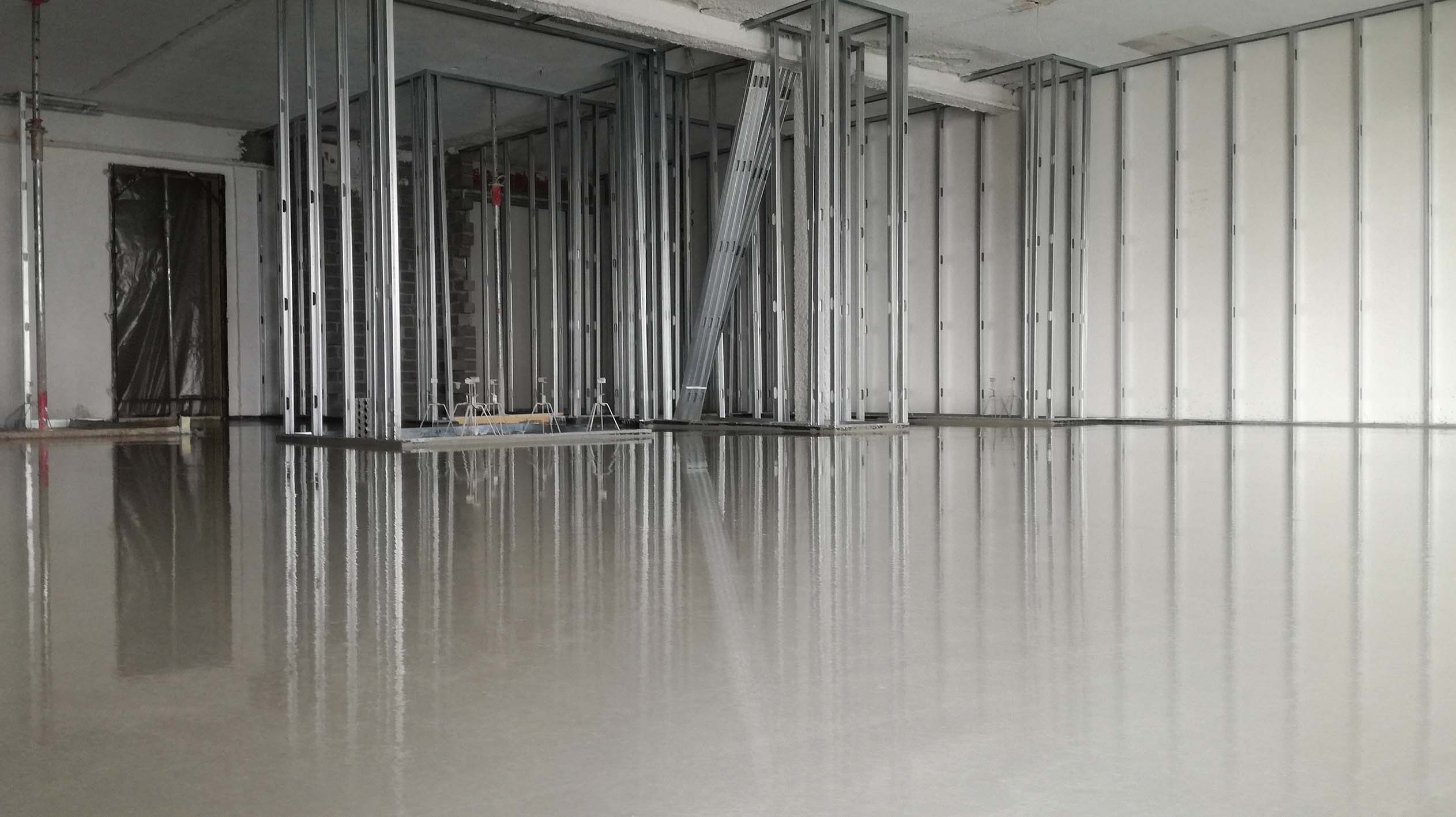 Proprio l’impresa costruttrice Covop, in corso d’opera si è trovata a dover gestire dal punto di vista tecnico una problematica: le altezze interpiano. La distanza tra i solai, infatti, era ai limiti della normativa per gli edifici residenziali; ed era quindi necessario realizzare nel più basso spessore possibile lo strato di supporto per la posa della pavimentazione. Inoltre, il solaio grezzo prima dei lavori si presentava molto irregolare, con superfici disomogenee: in alcuni punti avevano uno spessore di pochi millimetri, in altri di qualche centimetro. Era quindi necessario anche livellare in modo uniforme i nuovi solai. Posa a basso spessore e regolarizzazione delle superfici: un obiettivo combinato raggiunto efficacemente grazie a PaRis Slim di Laterlite, il massetto autolivellante, antiritiro, a basso spessore, ideale per lisciature di fondi irregolari o in presenza di riscaldamento a pavimento.