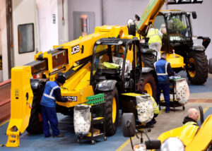 Ben 300 persone lavorano nella sede di produzione dei movimentatori e sulle linee di assemblaggio ci sono più di 460 persone. In ogni movimentatore telescopico JCB possono essere presenti fino a 3.000 componenti singoli per 35 fasi di realizzazione, l’assemblaggio completo di un movimentatore telescopico richiede circa 8 ore. Sulla linea di assemblaggio sono presenti tre punti di controllo qualità diversi per garantire che ogni macchina soddisfi i rigorosi standard di qualità di Jcb.