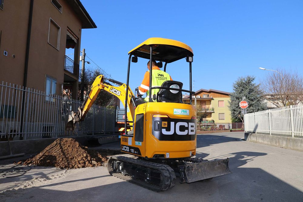Un Jcb mini 18Z-1 è stato scelto all’interno di un cantiere per la realizzazione di opere di urbanizzazione e reti di sottoservizi. Luogo delle operazioni è Spirano, comune in provincia di Bergamo, dove sono attualmente in corso lavori per l’adeguamento delle reti urbane in un’area di espansione residenziale.