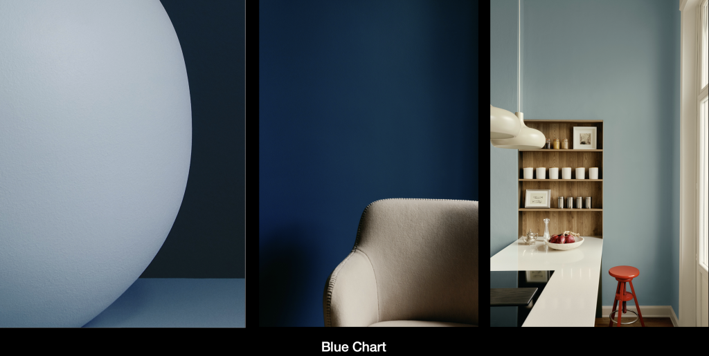 Con la Blue Chart, Kerakoll esplora le infinite variazioni del blu, dal chiarore quasi impalpabile dell’orizzonte al blu profondo delle ceramiche mediterranee. Questa gamma trasmette equilibrio e introspezione, raccontando il movimento della luce e dell’acqua. Ideale per ambienti contemplativi o per spazi che richiedono un senso di ampiezza e serenità, la palette blu gioca sul dialogo tra intensità e trasparenza.