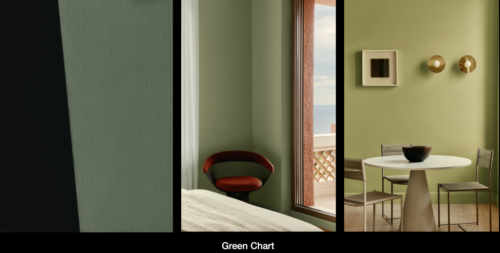 La Green Chart nasce dall’osservazione del paesaggio vegetale: foglie, muschi, foreste e ombre naturali diventano pigmento e materia. Il verde, colore della vita e della rigenerazione, viene reinterpretato da Kerakoll in chiave contemporanea, con toni che spaziano dai grigi-verdi più sofisticati ai verdi profondi e saturi. Ogni nuance è pensata per portare equilibrio e benessere negli spazi abitativi, traducendo la forza del paesaggio in un linguaggio progettuale.