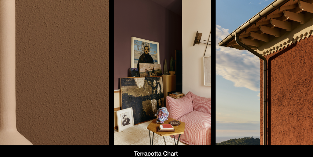 La Terracotta Chart è un omaggio ai paesaggi mediterranei e alla tradizione artigianale. Argilla, cotto, rocce aride e polveri minerali ispirano una gamma cromatica calda, avvolgente e autentica. Le tonalità terracotta esprimono il legame tra natura e cultura, tra materia e colore, restituendo un’estetica senza tempo, capace di adattarsi tanto agli interni contemporanei quanto alle architetture storiche.