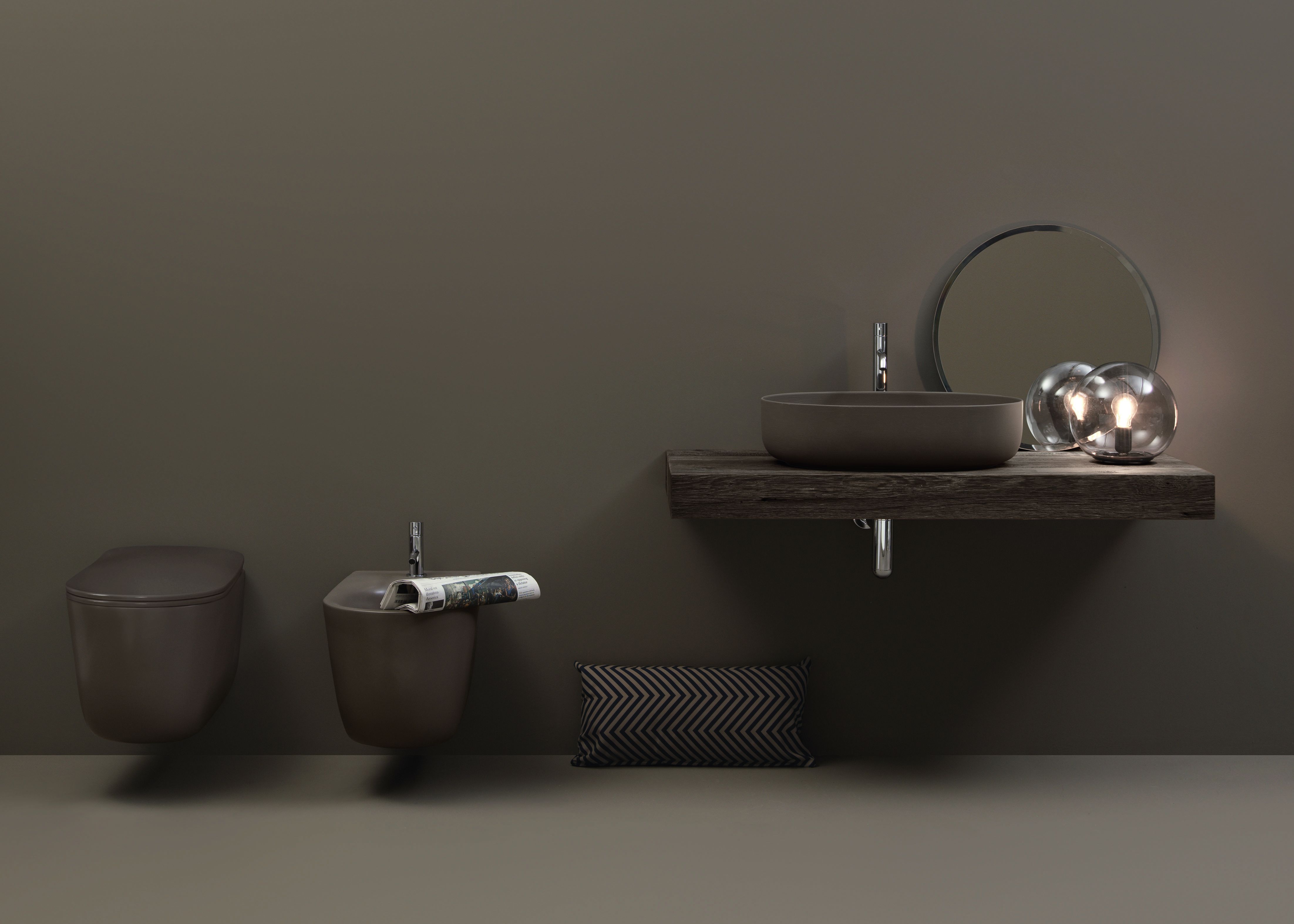 I sanitari sono disponibili nelle versioni sospesa e a terra. Il wc senza brida integra la tecnologia Norim che riduce l’utilizzo di acqua a soli 3 o 4,5 litri.