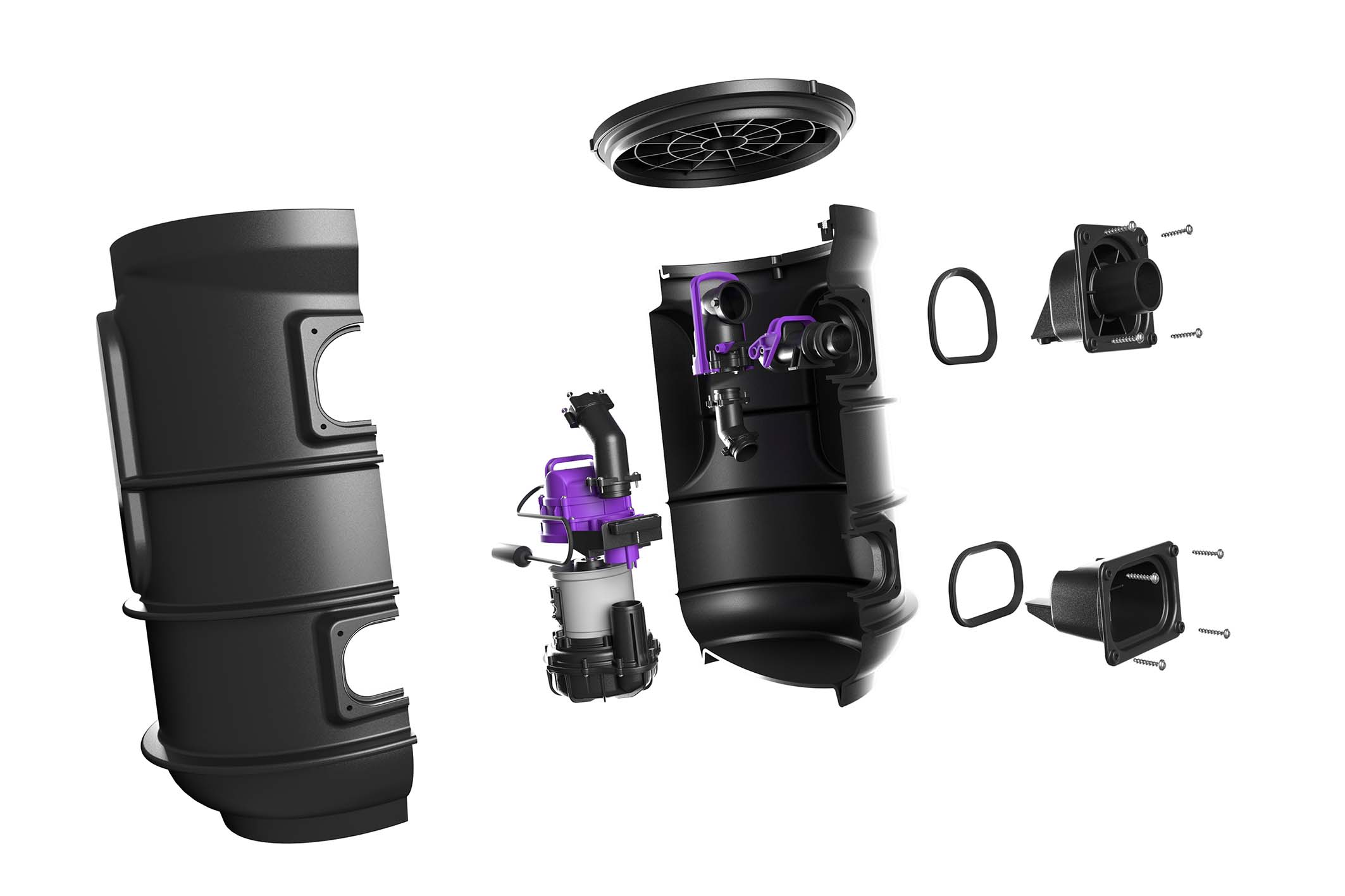 La nuova soluzione dispone di un galleggiante, la cui posizione è adeguabile all’entrata garantendo un ottimo funzionamento indipendentemente dal flusso delle acque di scarico, e tre collegamenti d’entrata prefabbricati (verticali e orizzontali), che rendono completamente flessibile il sistema di collegamento dei tubi di scarico. La superficie perforabile posteriore offre l’opportunità di ulteriori collegamenti collocabili liberamente fino a 110 mm. Il quadro elettrico in dotazione garantisce il monitoraggio continuo e il controllo sicuro dell’impianto.