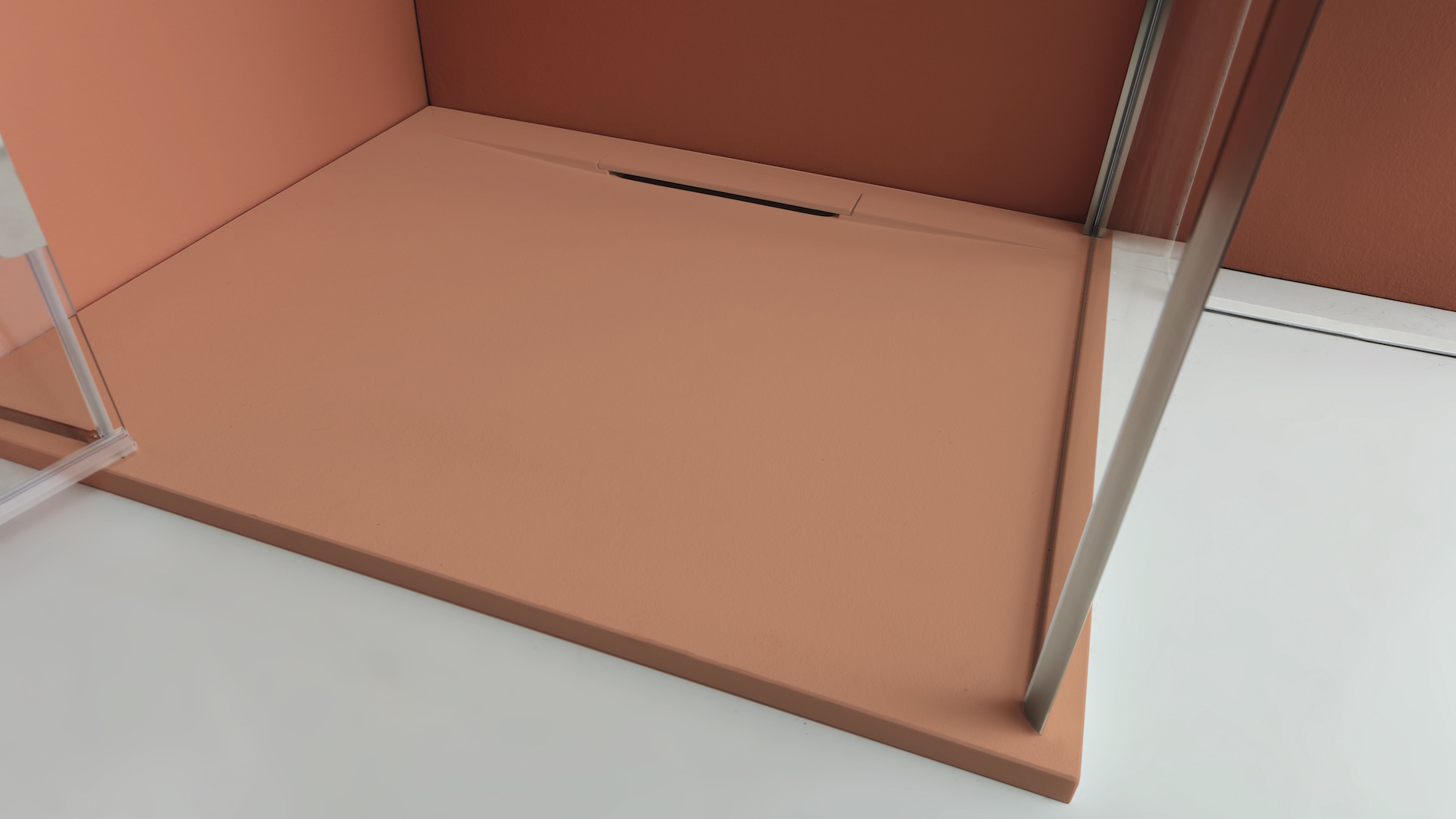 I piatti doccia Kinedo One sono realizzati in un composito di minerali naturali e resine, ma la sua conformazione differisce dagli altri per la sua sezione piena.