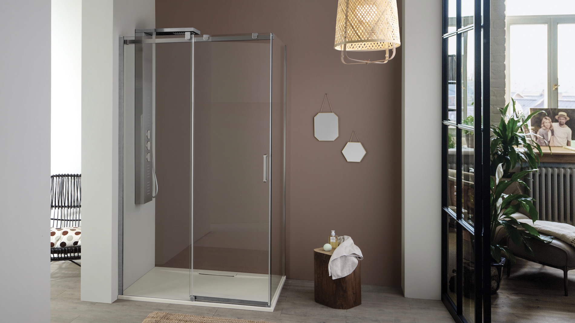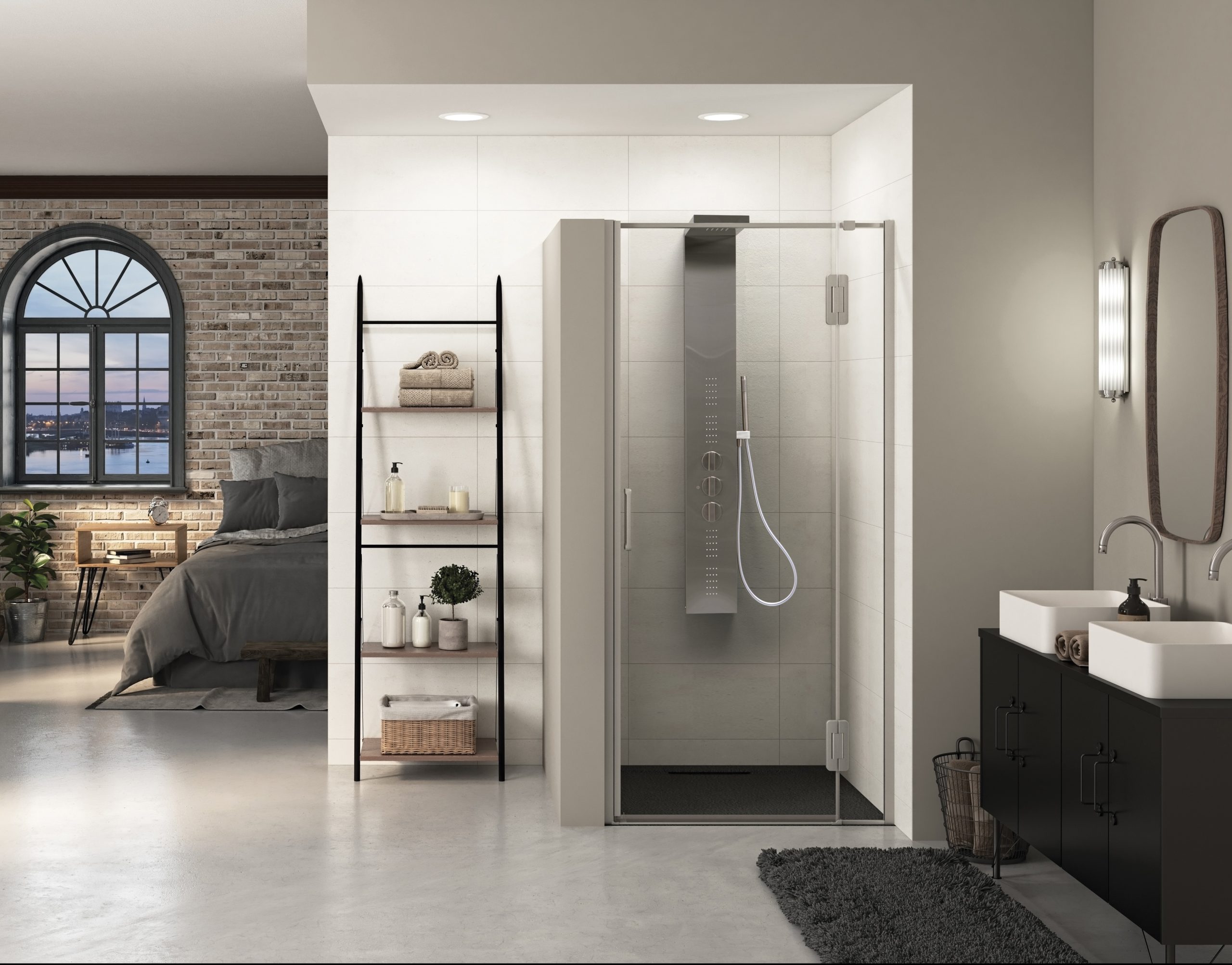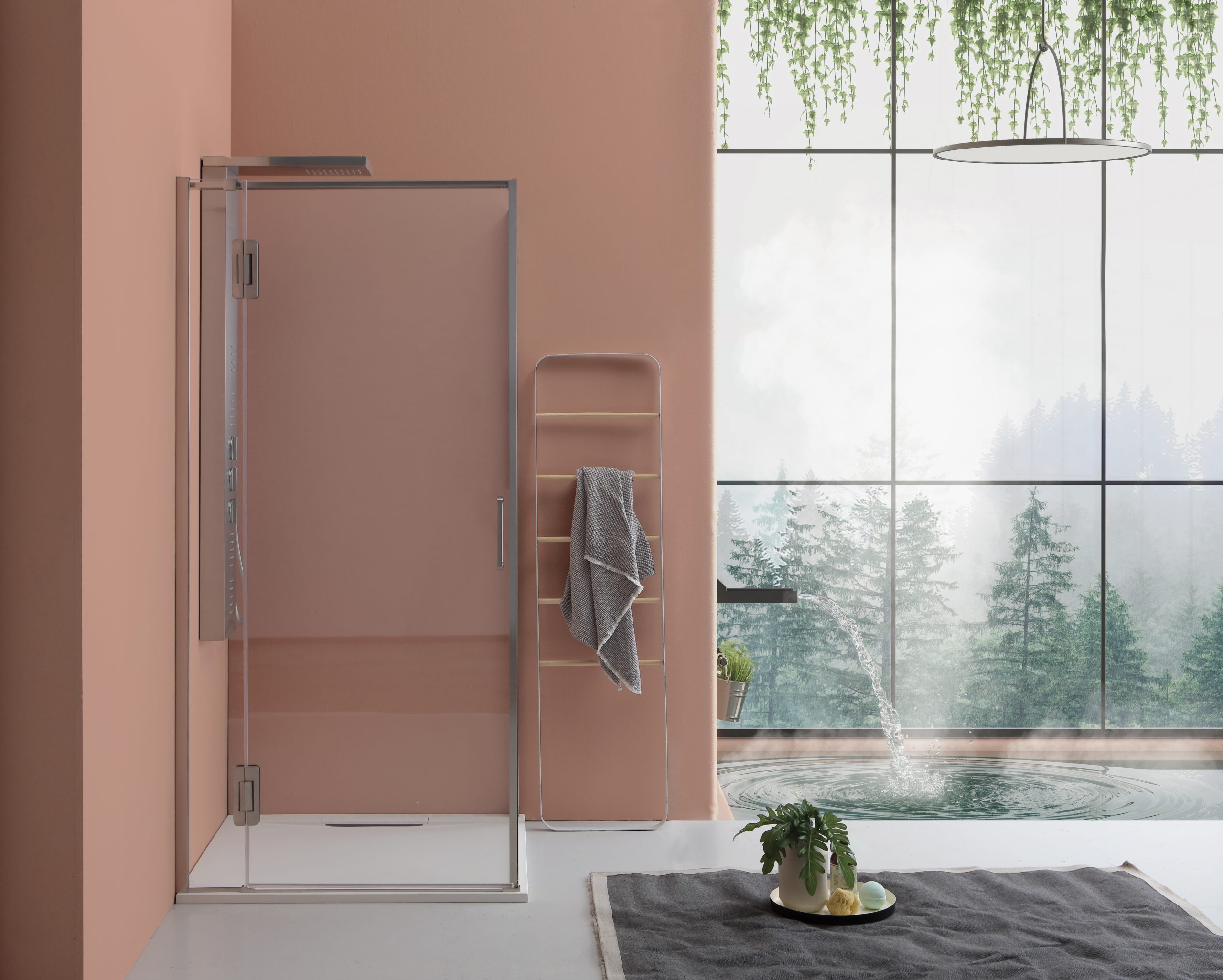 Disponibile sia con anta battente (spessore cristallo 6 mm) che con anta scorrevole (spessore cristallo 8 mm), Ekinox è ideale per chi cerca una soluzione dalle linee definite e che vede nell’essenzialità l’elemento che più predilige.