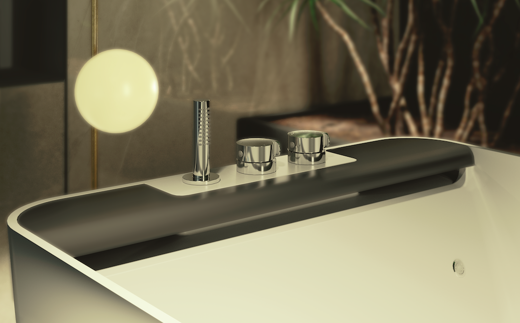 La vasca Glamour presenta un’importante novità, unica tra le vasche freestanding di Kinedo: il sistema a sfioro che contiene la fuoriuscita dell’acqua. Grazie a questo sistema, il livello dell’acqua è controllato e limitato dalla feritoia posta sotto il cuscino: prima che il livello si alzi a filo bordo, l’acqua in eccesso cade in una cisterna a perdere posta sotto lo schienale.