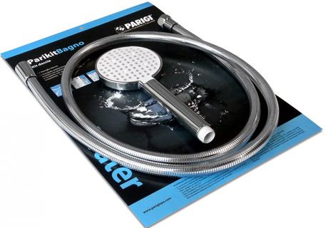 La nuova proposta di Parigi Industry per la sostituzione della doccia da bagno e da cucina: Parikit Doccia e Parikit Cucina. I kit sono composti da tubi della gamma Parigi Industry, Silver Metallic per la versione doccia e Docciamix per la versione cucina, abbinati alla relativa maniglia doccia. Silver Metallic è il tubo flessibile antitorsione per doccia da bagno, rivestito con piattina argentata e ricoperto di guaina protettiva trasparente, un articolo che unisce tecnica ed estetica. Docciamix è il flessibile che Parigi Industry produce da anni per i rubinetti doccia estraibili, installati sui lavelli da cucina.