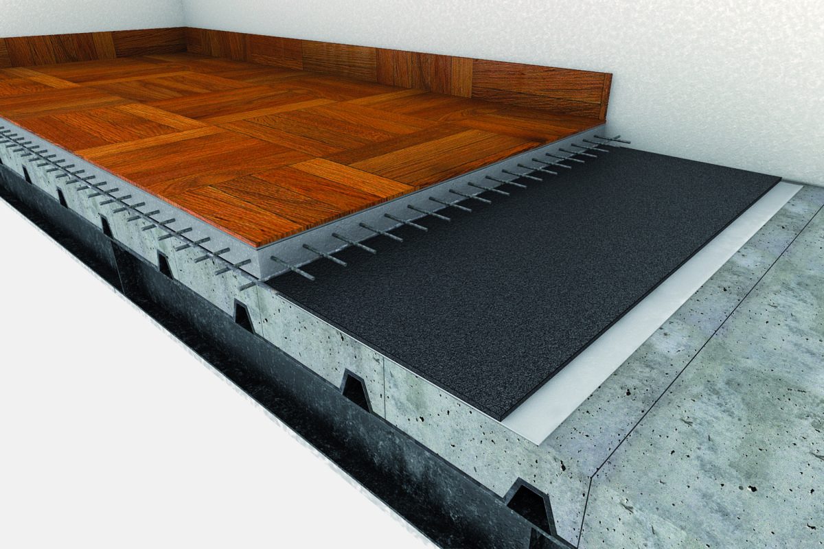 Avanguardia dei tappeti isolanti. I tappeti fonoisolanti per pavimenti galleggianti interrompono la continuità della struttura, principale mezzo di trasmissione del rumore, bloccandone le vibrazioni acustiche.
