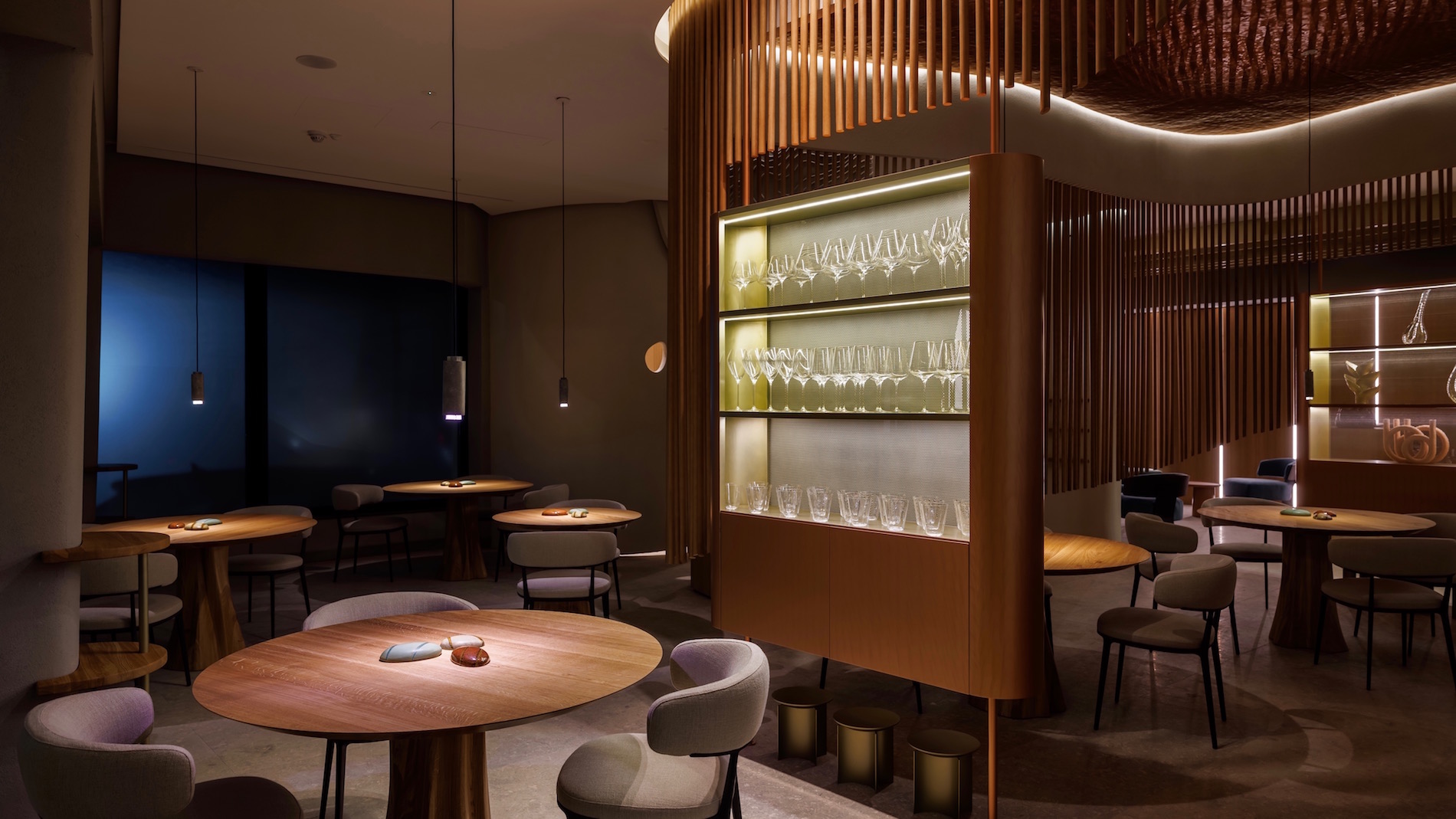L’ambiente al “Orma” è un’esperienza calorosa e informale, dove la scelta di materiali ricercati ma naturali crea un’atmosfera accogliente. Le sedute sono avvolgenti, mentre i tavoli sembrano emergere dal pavimento come alberi eleganti. L’illuminazione interna e gli arredi su misura arricchiscono gli spazi, conferendo un tocco sofisticato.