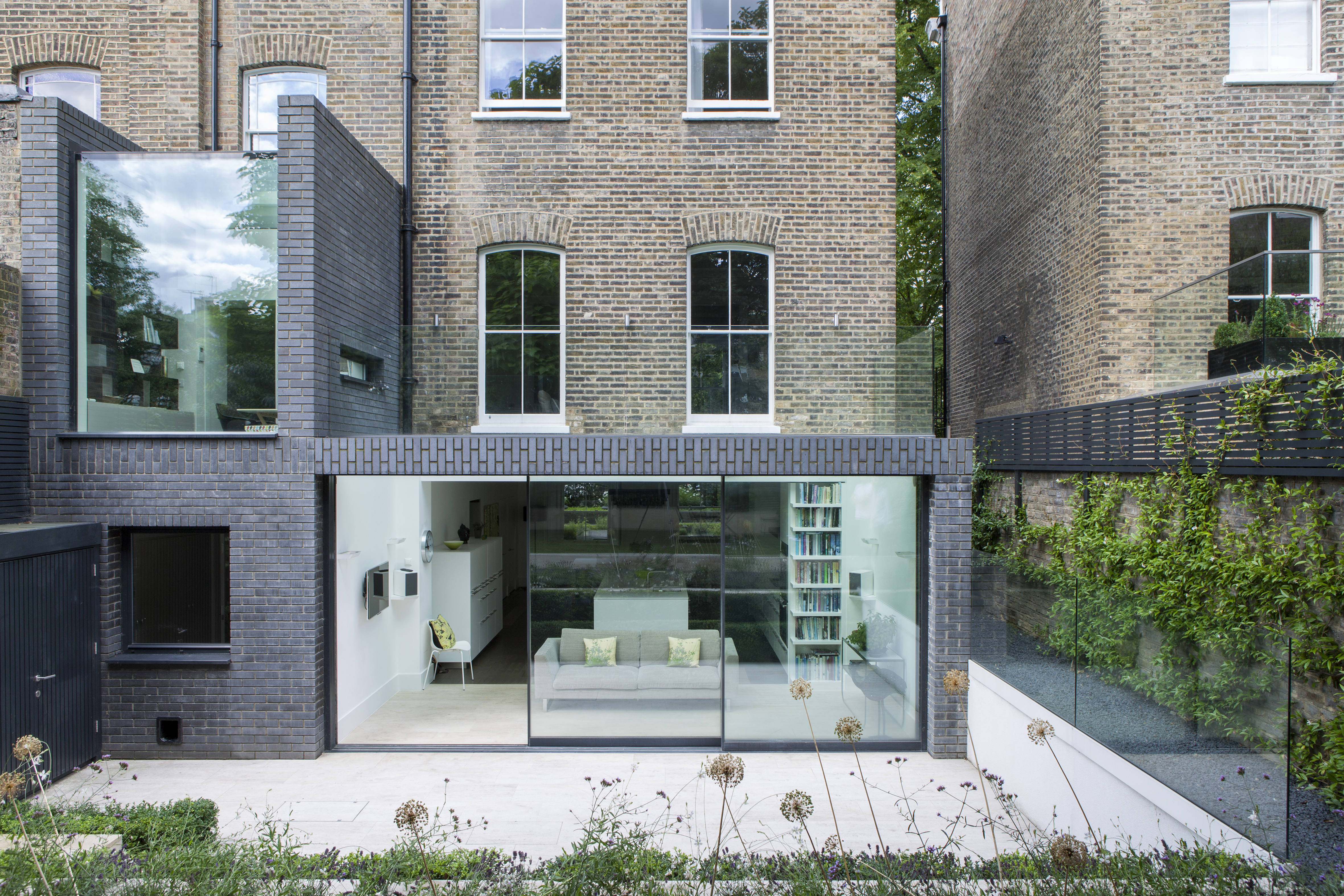 Nell’edificio storico si riconosce l’impianto di una tipica casa a schiera di età vittoriana: due campate, lo spazio abitabile passante con doppio fronte, la zona laterale di servizio che include la scala di distribuzione. Il progetto principalmente affronta il tema del rapporto con una preesistenza storica, non nei termini di una imitazione, ma attraverso una interpretazione «evoluta» della tipologia a schiera.