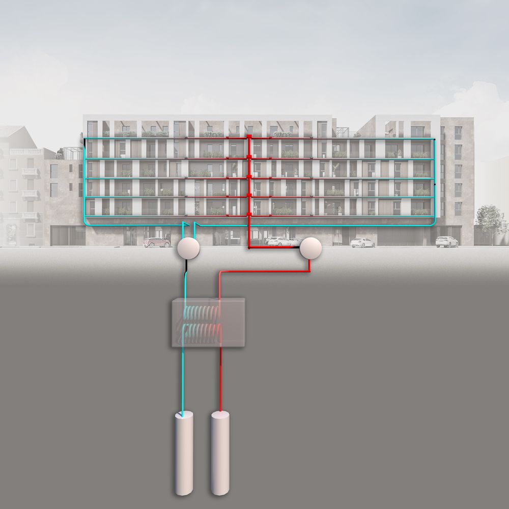 Infatti, grazie alla geotermia acqua, terra e aria – fonti pulite e rinnovabili – e con l’aiuto di una pompa di calore si produce energia che viene impiegata nei diversi utilizzi garantendo un ambiente domestico confortevole, piacevolmente caldo d’inverno e fresco d’estate. Una volta terminato il processo, l’acqua viene utilizzata per irrigare il parco tornando nella falda da cui è stata prelevata.