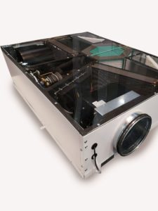• Lo scambiatore interno della pompa di calore cede energia, termica o frigorifera, all’aria in immissione, mentre lo scambiatore esterno della pompa di calore – il secondo stadio di recupero, dopo il recuperatore a flussi incrociati – recupera l’energia, termica o frigorifera, dall’aria in espulsione.