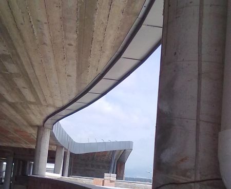 Lo stato delle lavorazioni riguarda la realizzazione di una «scocca metallica» allungata, di forma concavo-convessa, aggrappata alle strutture in c.a., posta mediamente a 4.60 m dal suolo.