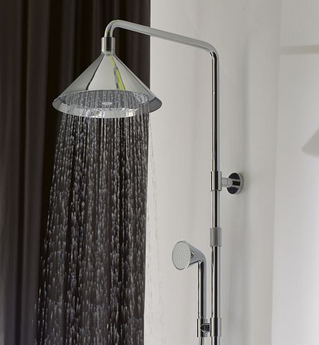 Ispirazione retrò e fascino del disegno industriale caratterizzano i nuovi elementi doccia Axor ShowerProducts by Front. Funzionalità, ergonomia e praticità d’uso sono le caratteristiche di questo elemento che ritrova, al contempo, il fascino di tubi, manicotti, valvole e imbuti. Il progetto Axor ShowerProducts prevede cinque elementi per l’area doccia: doccetta, kit con doccetta su asta, kit con soffione e doccetta su asta regolabile, soffione a soffitto e a muro. La doccetta manuale è semplicissima eppure insolita, nella sua forma conica che richiama la bocca dell’annaffiatoio.