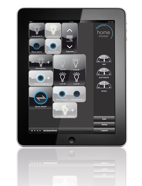 Il segreto è nella tecnologia: infatti Home Master è la “chiave” di Vitrum applicata a diversi dispositivi e racchiude in sé molteplici applicazioni d’uso: il Telecomando Home Master, che rende semplice la configurazione, offre la possibilità di selezionare fino 4 scenari di luce, comandare altrettanti fonti luminose a scelta, “dimmerare” le stesse ed eseguire il comando master off. Installando il Router Home Master, e collegando tra loro i prodotti Vitrum Wireless presenti in casa, è sufficiente scaricare l’applicazione gratuita Home Master App per gestire l’intera tecnologia della propria abitazione (luci, tapparelle, temperatura, eccetera), e vedere in tempo reale, attraverso la presenza di comuni IP-webcam, tutti gli ambienti di un appartamento sul proprio tablet o smartphone.
