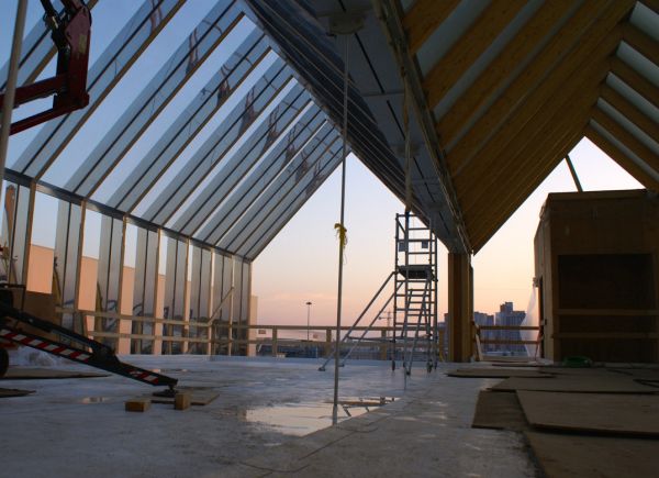 I grandi telai che caratterizzavano la geometria del padiglione erano stati assemblati montando assieme differenti pezzi tra di loro: il pilone centrale, i due laterali con geometria a L allungata e quello centrale con geometria a V. Tutti gli elementi erano stati sagomati in officina e successivamente cantierizzati in sito attraverso la gru di cantiere; i vari elementi erano stati imbullonati tra loro utilizzando bielle metalliche maschiate preforate per l’alloggiamento dei bulloni di serraggio, posizionate negli angoli. Tutti i materiali impiegati per la realizzazione del padiglione avevano un’elevata sostenibilità e una bassa impronta ecologica.