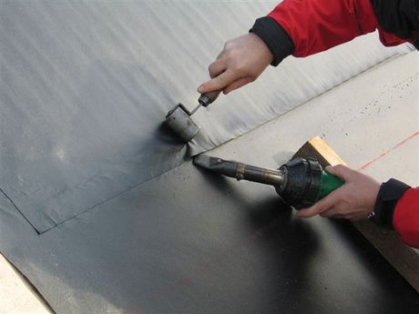 Nel caso del fissaggio termico, basta procedere attraverso un apposito termosoffiatore al fissaggio dei teli della guaina, i quali vengono uniti insufflando l’aria calda nella sovrapposizione da saldare mediante ugelli. In questo caso, oltre all’aria calda, l’operazione di saldatura non necessita di altro prodotto. L’assemblaggio delle membrane si effettua quindi per riscaldamento delle superfici da mettere in contatto. Esercitando una pressione uniforme sulle membrane portate allo stato plastico si ottiene una saldatura uniforme. In questo modo la connessione dei teli è veloce e i sormonti sono praticamente invisibili.