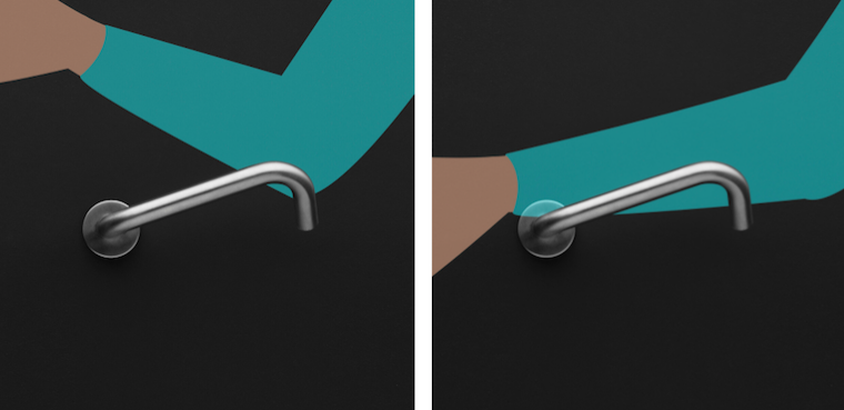 NoHand è caratterizzata da un cilindro che si eleva in alto per facilitare l’apertura con il gomito e avambraccio. Un design semplice e moderno, che si concentra su funzionalità ed ergonomicità.