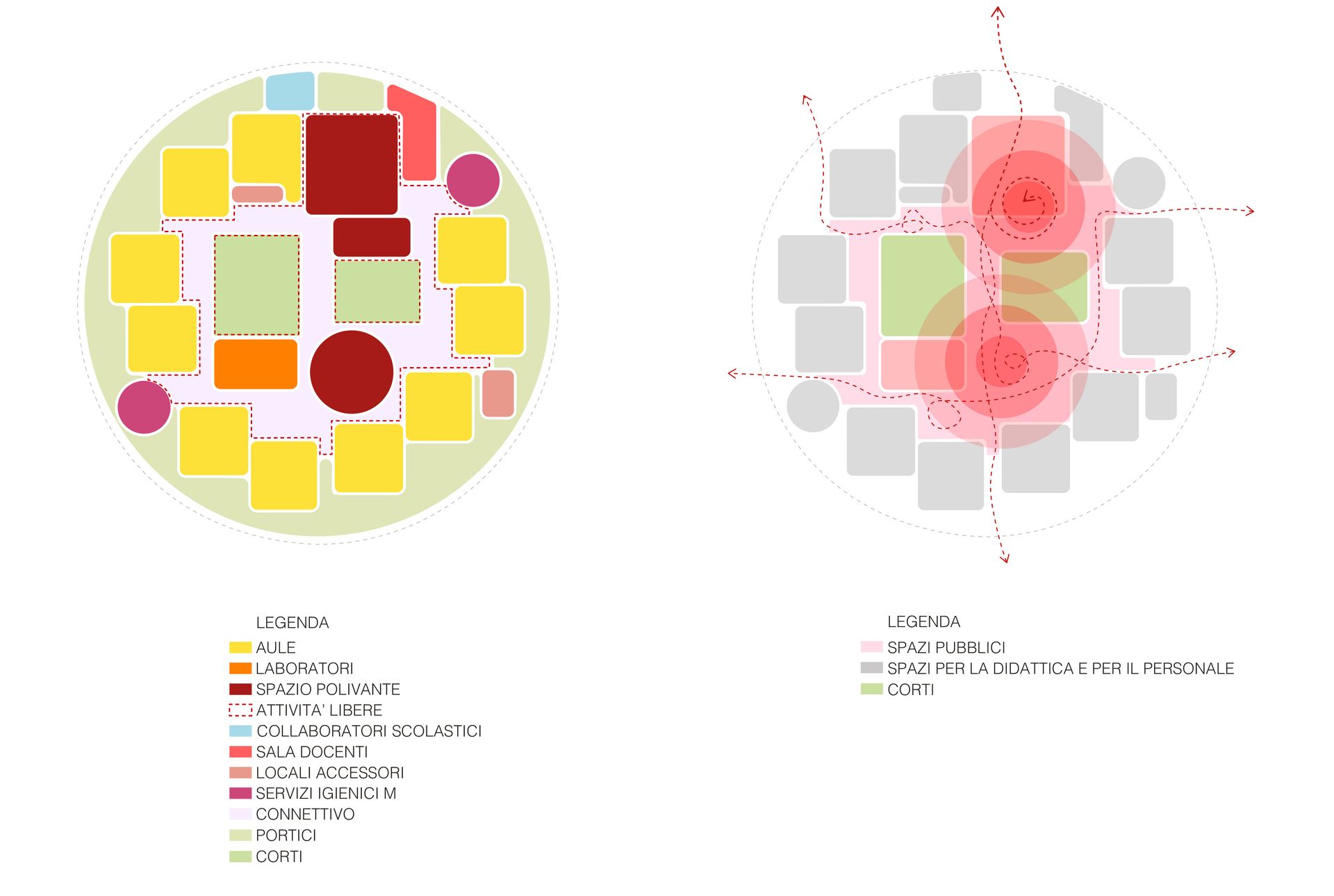 «Abbiamo disegnato uno ‘spazio delle potenzialità’, dove ogni ambiente può essere trasformato dalla creatività degli insegnanti o della comunità che vi ruota intorno”Tutti gli spazi di distribuzione sono generosi e possono essere trasformati in ‘spazi per attività speciali’ anche in orario extra-scolastico. In questo modo la scuola diventa un epicentro per la comunità e ne rafforza l’identità».
