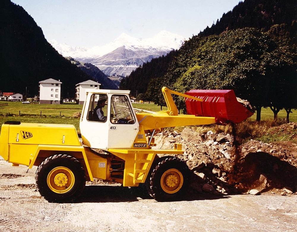 Nel 1969 la divisione pale gommate costruì solo 298 macchine, principalmente per soddisfare la domanda della clientela domestica. Nel 1971 vennero introdotte le prime macchine progettate da Jcb con il lancio dei modelli 413 e 418 in sostituzione degli ex modelli Chaseside. Queste pale erano dotate di una cabina montata sulla parte anteriore del telaio articolato per fornire all’operatore una visuale migliore sull’area di lavoro, e di uno snodo centrale oscillante per garantire che tutte e quattro le ruote rimanessero a contatto con il terreno assicurando il massimo sforzo di trazione.