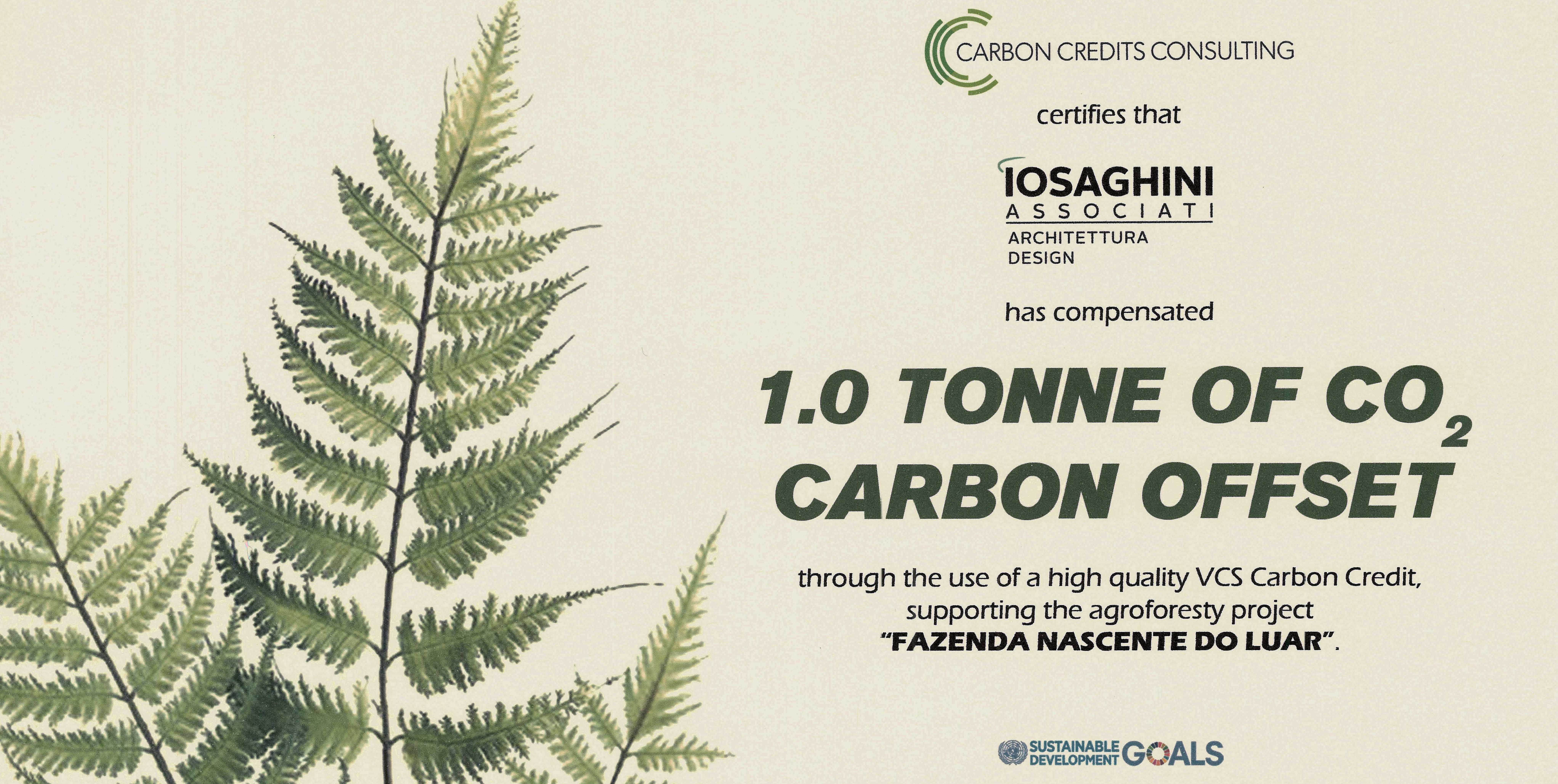 Iosa Ghini Associati acquista Carbon Credits per ciascuno dei propri clienti come dono di Natale, inviando ad ognuno un Certificato emesso ufficialmente da Carbon Credits Consulting.