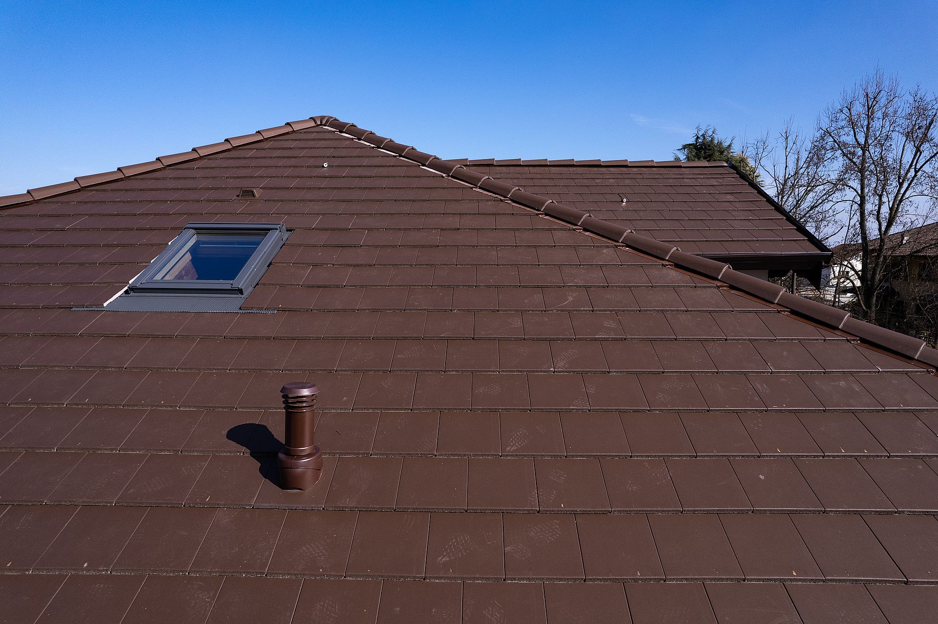 In merito al manto di copertura, per rispondere alla richiesta stilistica della committenza di allontanarsi dal tradizionale profilo curvilineo optando per una forma più contemporanea e accattivante, si è scelto Tegal Innotech: la tegola in cemento di BMI WIERER dal profilo lineare e innovativo.