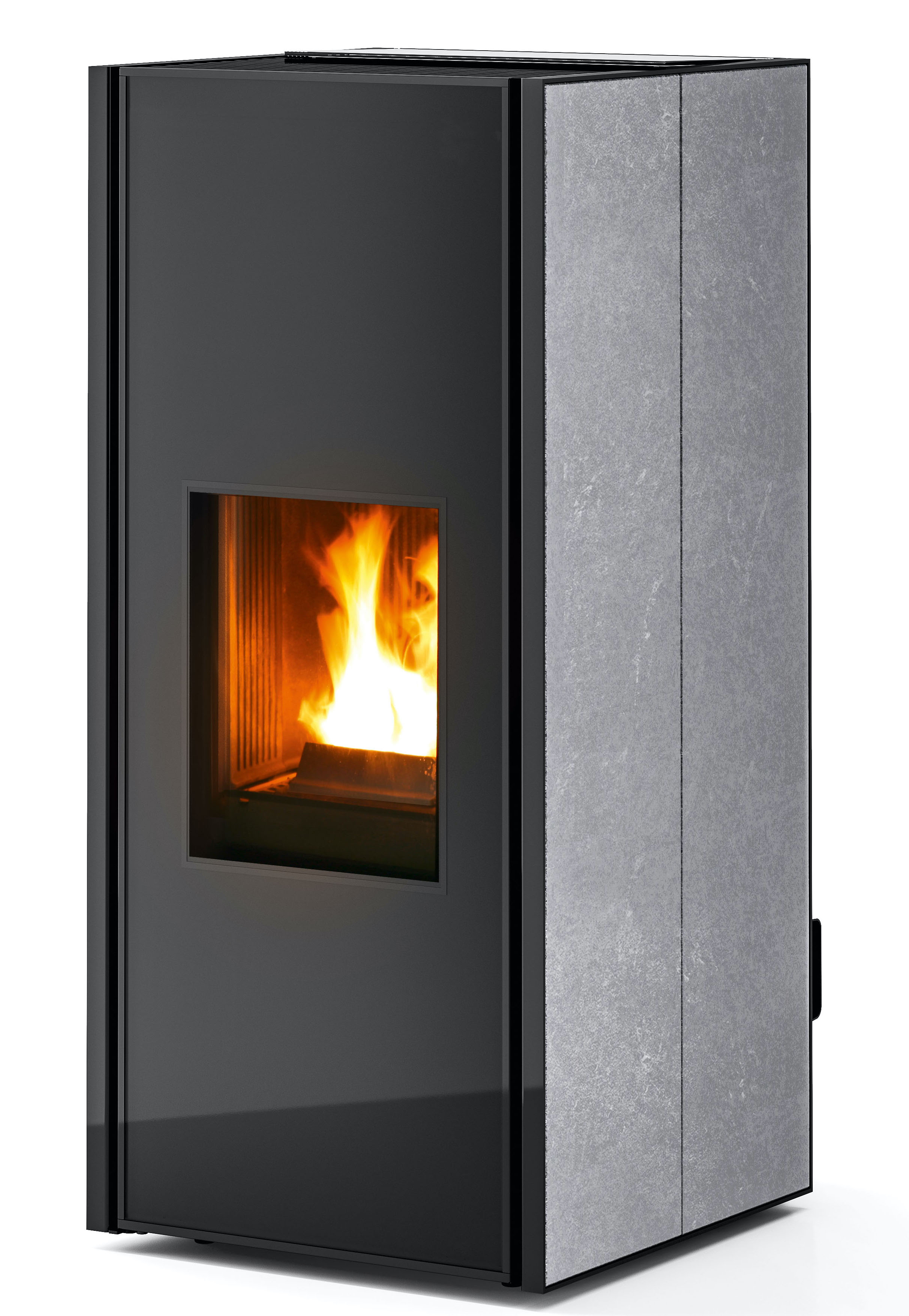 Un mix di design e tecnologia: è Klin, la stufa a pellet di Mcz caratterizzata da una doppia porta frontale in vetro, braciere in ghisa nera e solidi fianchi, che possono essere in acciaio verniciato o in pietra serpentino.