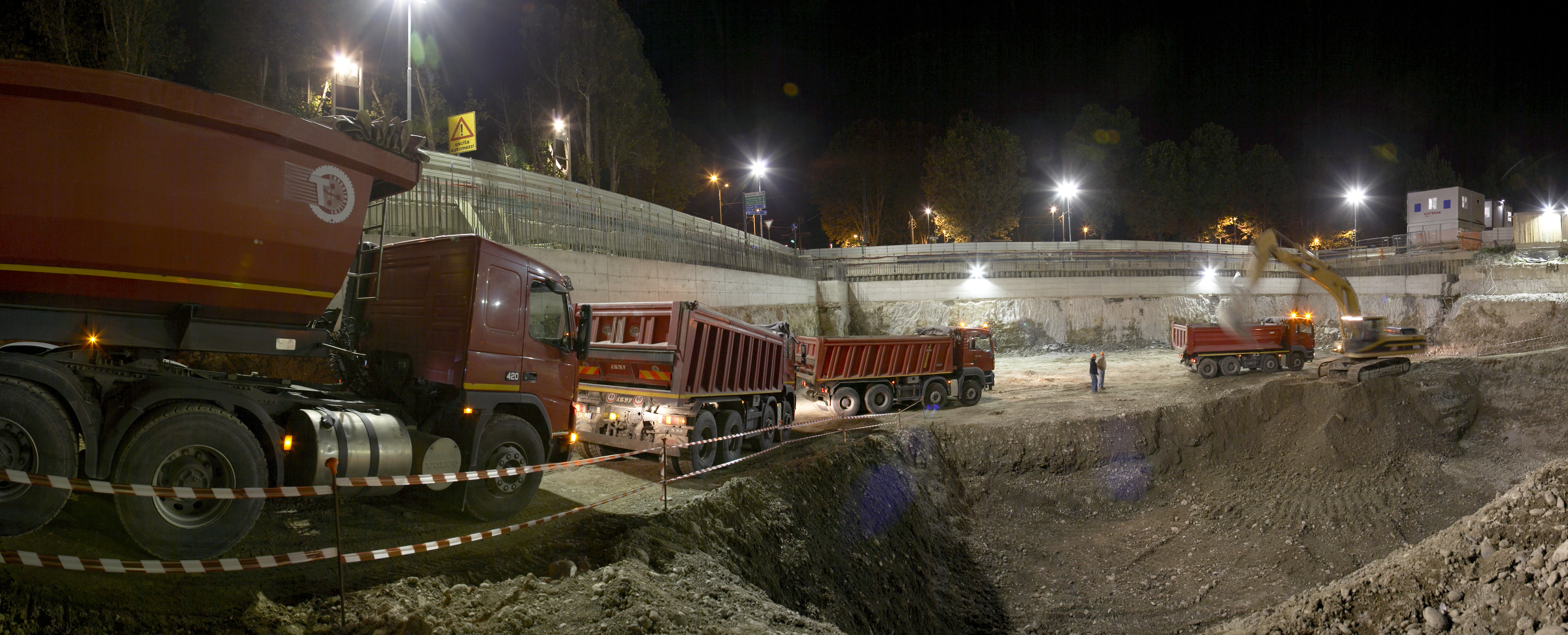 Espletate le indagini geognostiche nel 2007, i lavori sono stati avviati il 12 dicembre 2008. La prima fase del progetto ha previsto la costruzione dei diaframmi perimetrali, lo scavo fino alla quota di – 24 m dal livello stradale con la tecnica «top down» e la realizzazione di un solaio di contrasto a livello – 11 m. I lavori si sono conclusi nel marzo 2010.