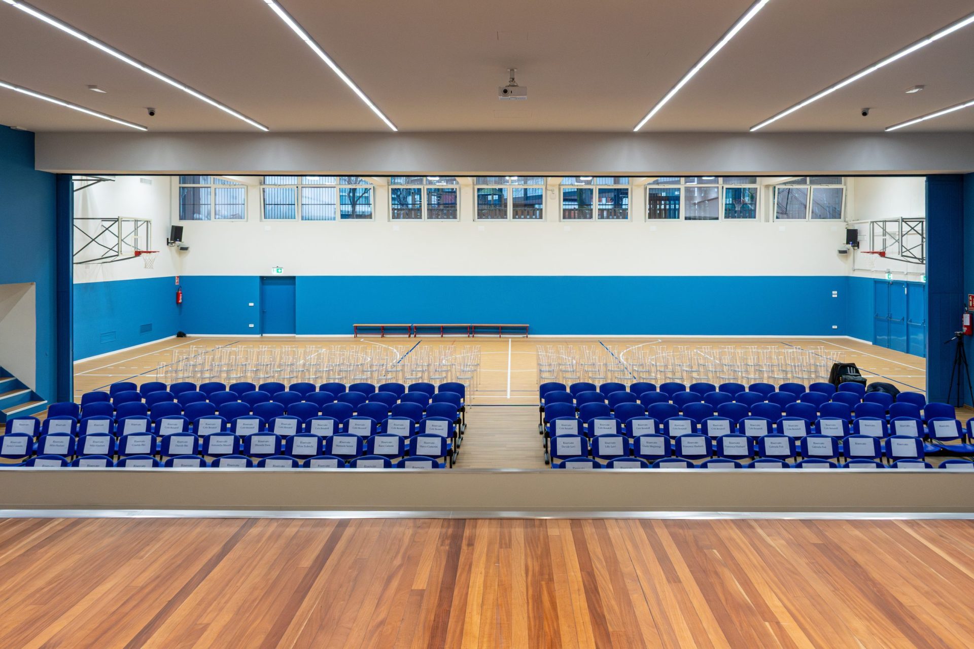 Il piano di ristrutturazione ha incluso un ampio intervento che ha riguardato tutti gli aspetti delle strutture scolastiche. Sono stati sostituiti i serramenti, aggiornati gli impianti elettrici e idraulici, rifatti gli intonaci e imbiancati gli interni, e sono stati forniti nuovi arredi moderni e funzionali. Inoltre, gli spazi sono stati dotati di impianti audio di ultima generazione, garantendo così che l’aula magna abbia potuto ospitare in modo adeguato momenti di condivisione, eventi e cene di gala, elevando il livello qualitativo delle esperienze offerte.