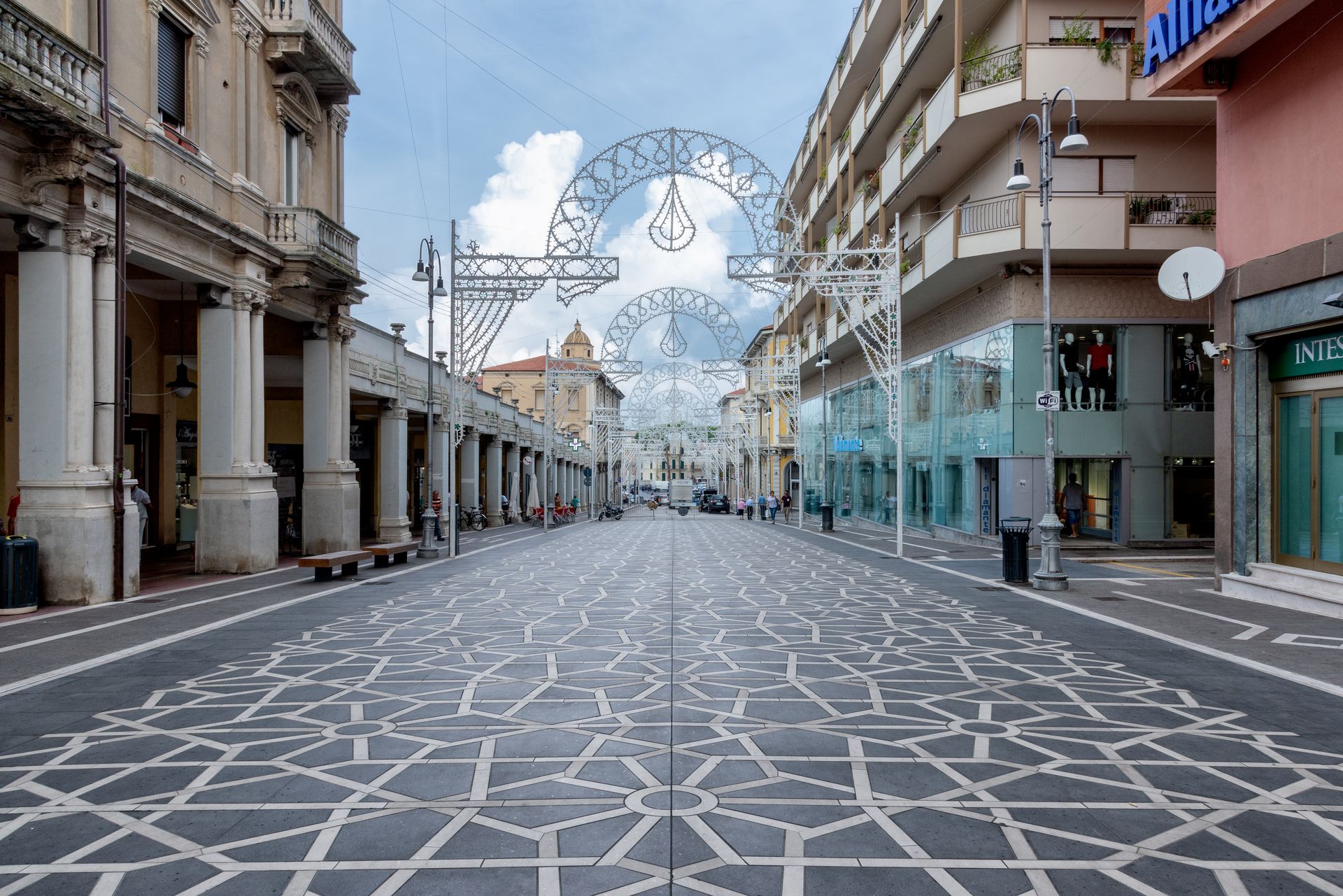 Lo storico asse urbano tracciato dall’arch. Filippo Sargiacomo, che prefigurava il nuovo sviluppo della città fino alla villa pubblica dell’area conventuale di Sant’Antonio di Padova, viene restituito alla collettività come ambito pedonale relazionato agli usi commerciali e per le grandi manifestazioni culturali e religiose.