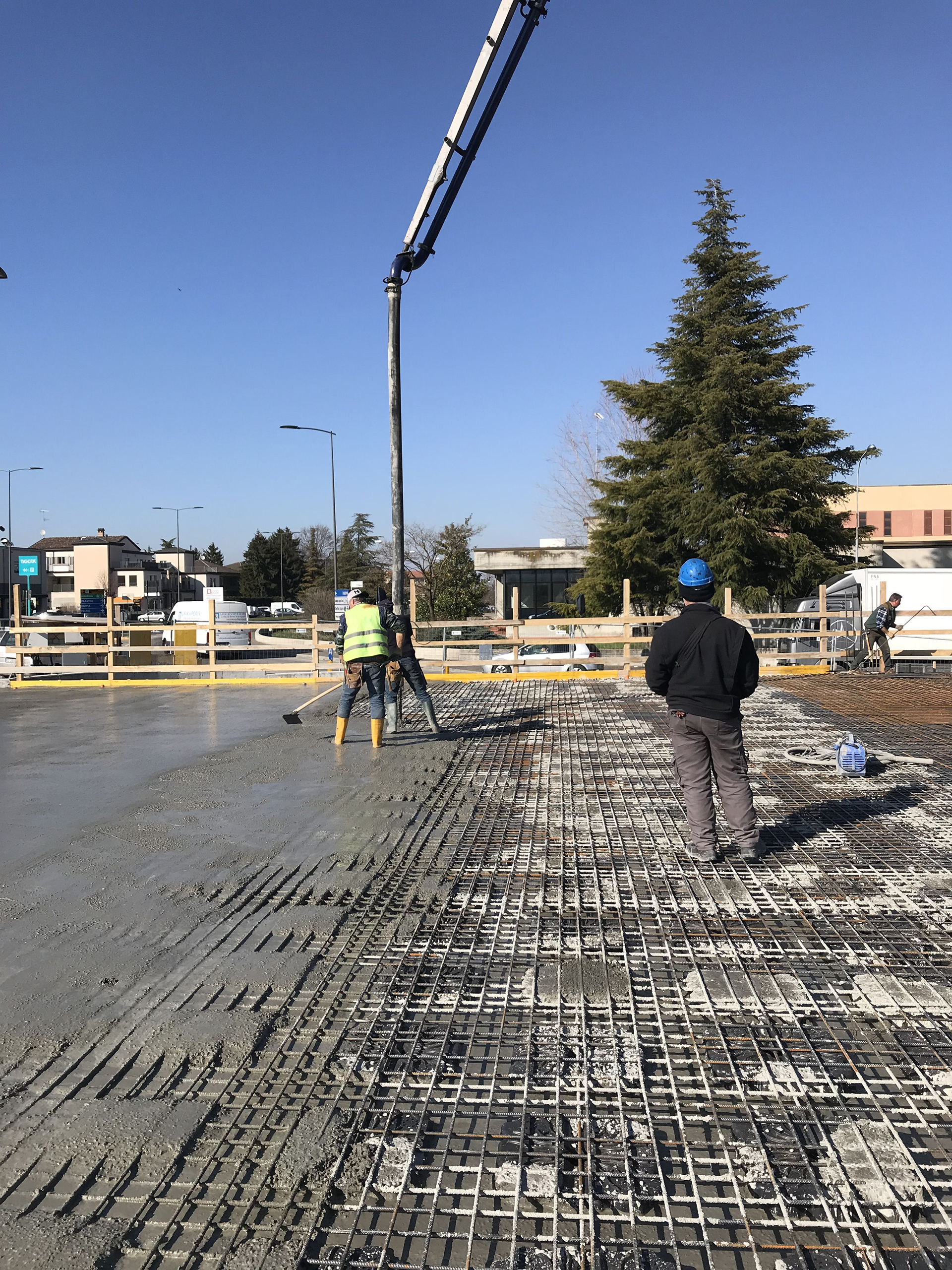 Questa soluzione ha permesso di semplificare sia la struttura di fondazione evitando l’utilizzo di plinti, sia la struttura di solaio evitando travature ribassate, in modo da contenere l’altezza d’interpiano e la profondità dello scavo.