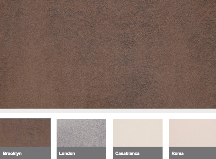 Urban si declina nella versione Brooklyn, un’interpretazione inedita dei colori e delle sfumature delle leghe di ferro per un risultato suggestivo e materico, che ricorda l’autentico corten. London evoca invece il mood dei building della capitale britannica, un grigio cenere con toni ispirati al colore fumo di Londra. Le colonne, i palazzi nobiliari e il marmo sono le suggestioni che hanno portato l’azienda a creare Roma, la terza proposta che ricorda una tinta crema, molto calda ed elegante. Casablanca è infine un colore eburneo, chiaro e puro, che richiama gli edifici bianchi della città marocchina.