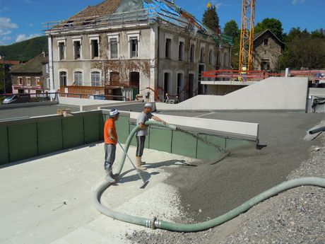Lo strato di riempimento avrebbe inoltre dovuto garantire adeguate capacità drenanti al fine di evitare ristagni d’acqua e conseguenti danni all’edificio. È stato scelto un riempimento realizzato con l’argilla espansa Lecapiù, nella granulometria tipo 3-8 e con impasto cementato. Nel cantiere l’impresa è stata in particolare chiamata a realizzare uno strato di riempimento di spessore considerevole, all’incirca 70 centimetri, in tempi fortemente vincolati dalla necessità di porre in esercizio la struttura il più rapidamente possibile.