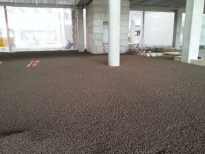 Nel cantiere della nuova sede Twinset l’utilizzo di Leca Termopiù ha consentito di realizzare un sottofondo isolante e con adeguate caratteristiche di portanza. In questo caso Leca Termopiù è stata utilizzata nella versione sfusa imboiaccata, modalità che massimizza le prestazioni termiche e la velocità esecutiva, e posata con pompe, assicurando così una elevata velocità costruttiva fondamentale nello svolgimento delle attività di cantiere. Complessivamente sono stati posati circa 330 mc di prodotto su una superficie di oltre 600 mq.